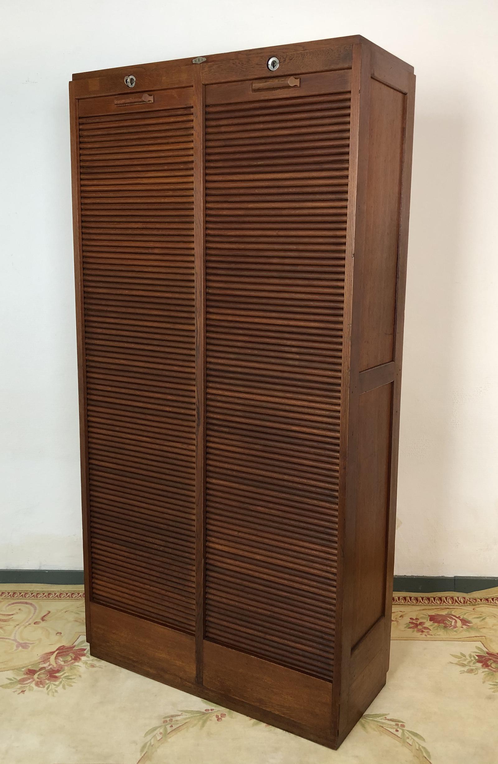 Vintage Mid Century Double French Filing Cabinet Tambour Roller Shutter “Radia”