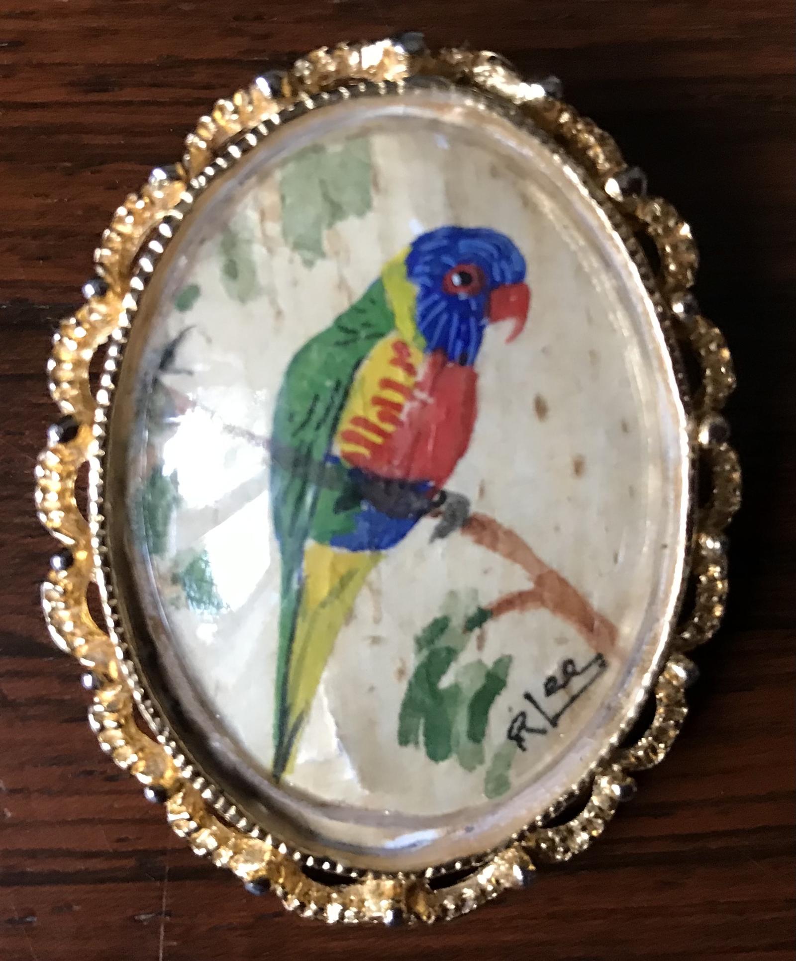 Vintage Mid-century Hand Painted Rainbow Lorikeet Brooch - Signed R Lee