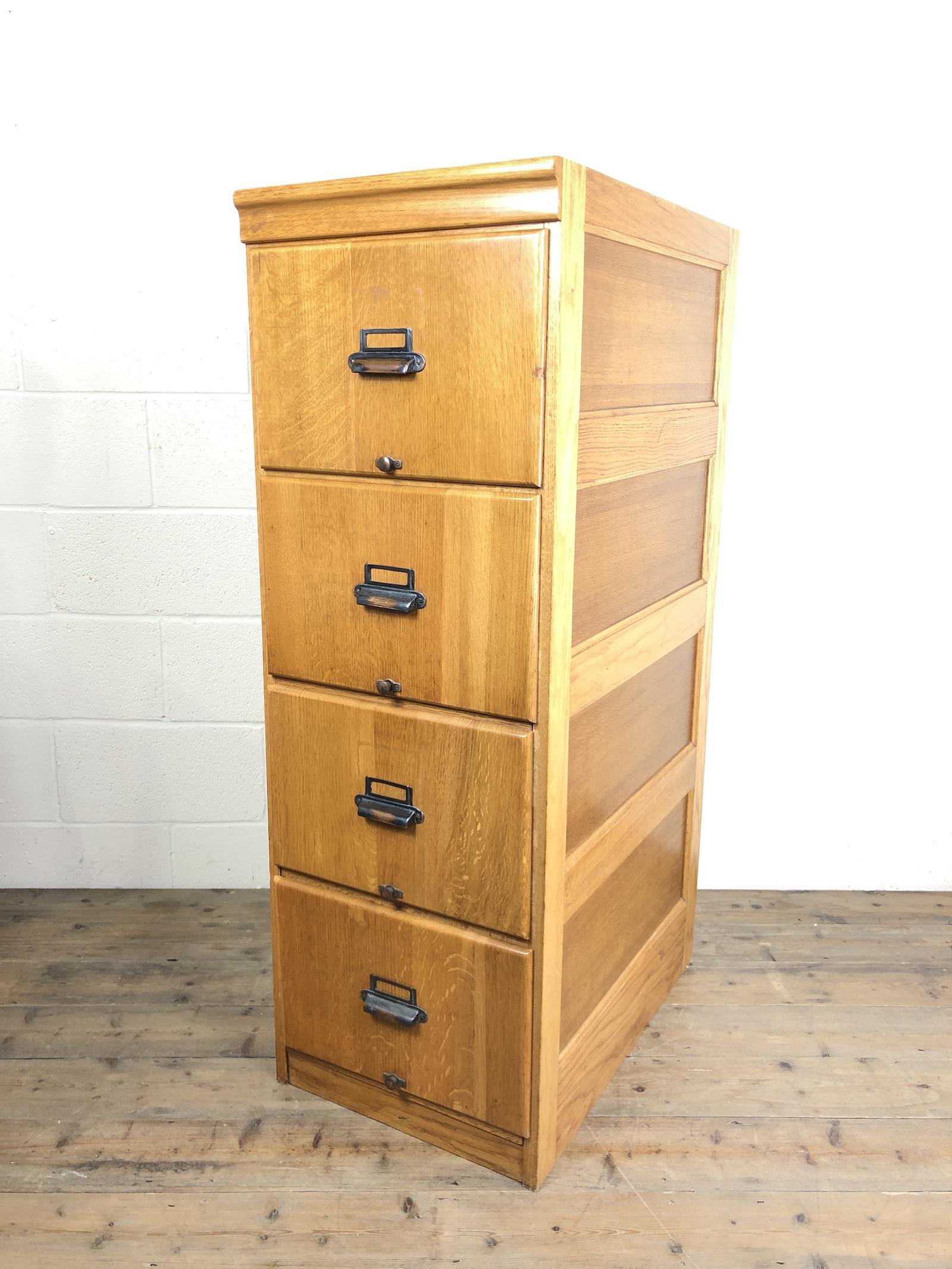 Vintage Mid-Century Oak Four Drawer Filing Cabinet (1 of 11)
