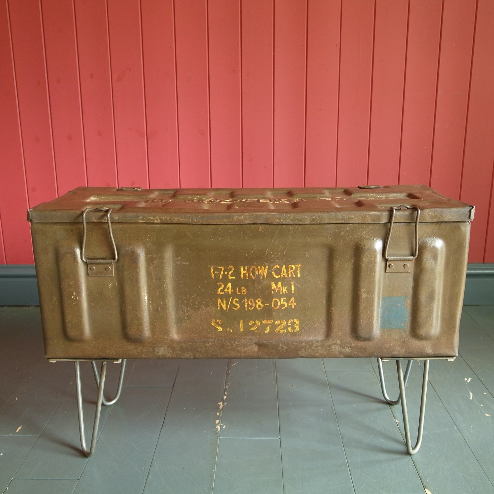 Vintage Mid Century Trunk Coffee Table Reclaimed 1940s Ww2 Military Storage Chest Retro Industrial Box