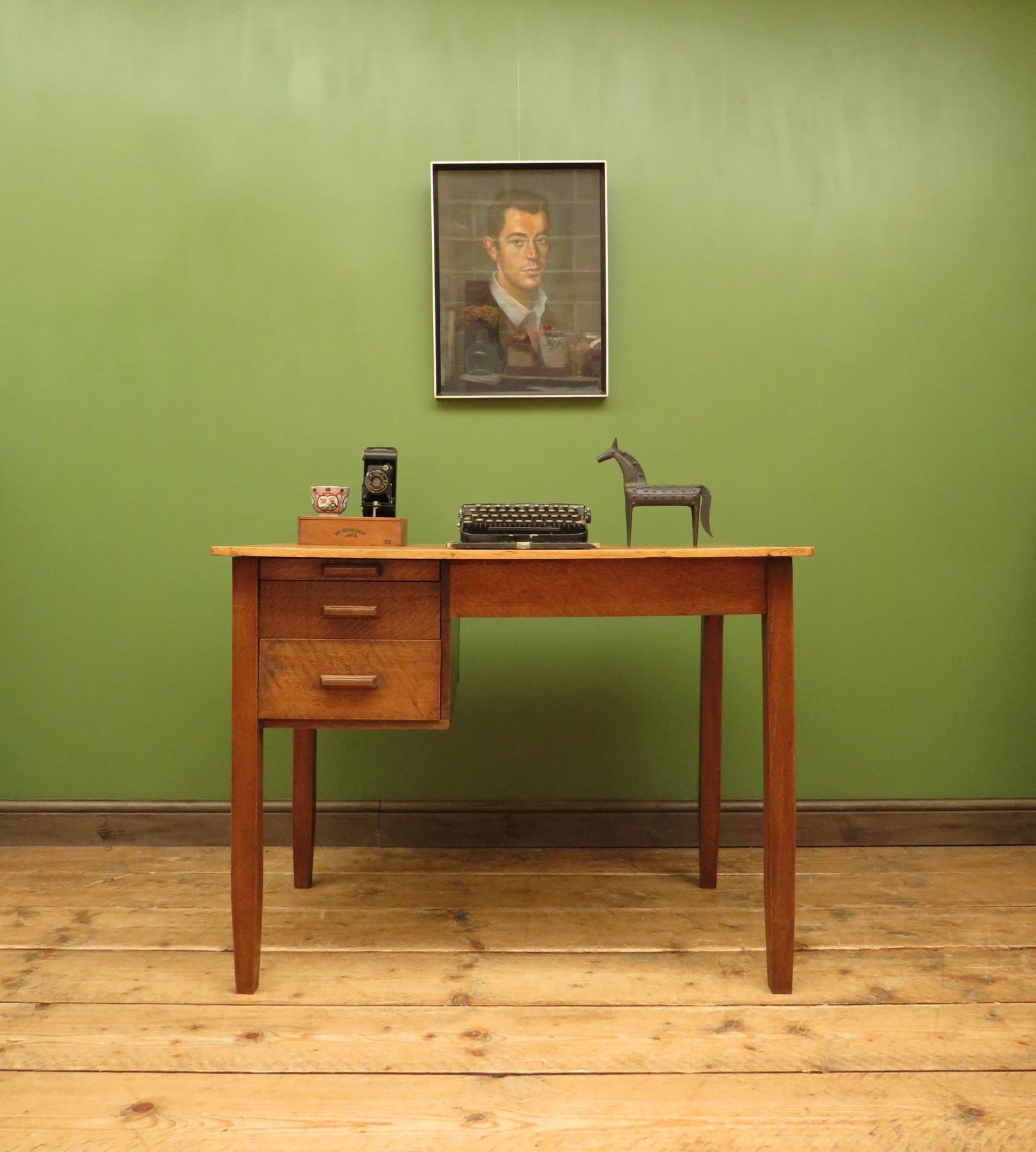 Vintage Mid Century Utilitarian Oak Desk with Drawers