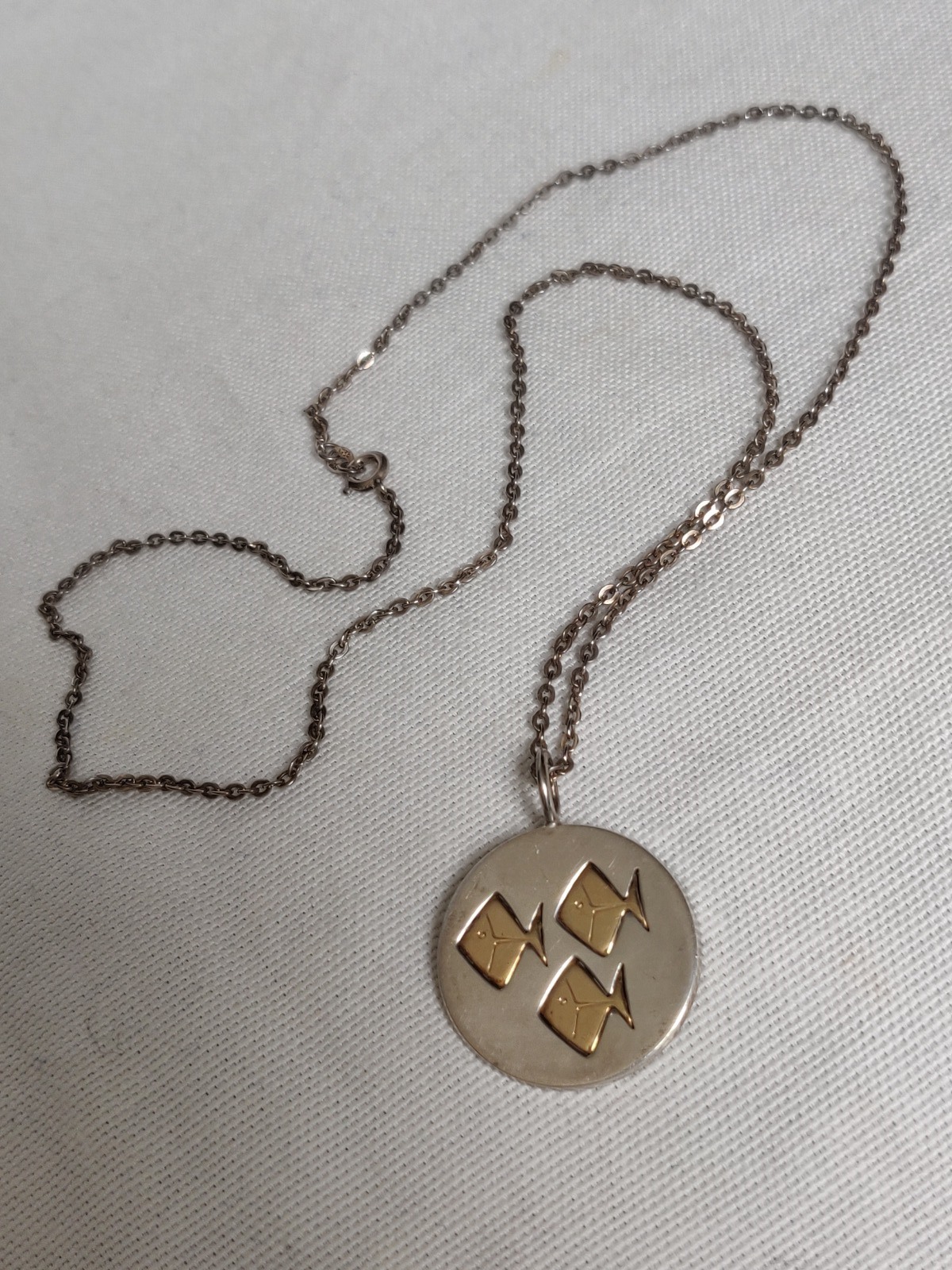 Vintage Modernist Sterling Silver Necklace Finland Kupittaan Kulta Fish Design