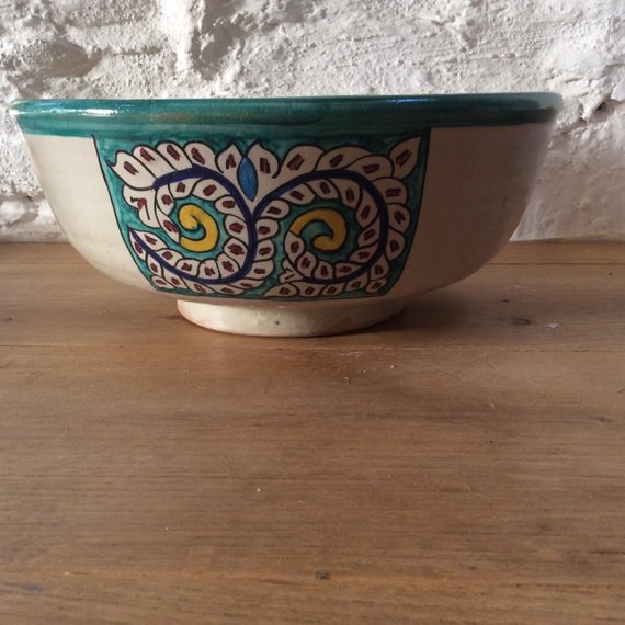 Vintage Moroccan Handmade & Painted Pottery Ceramic Basin Bathroom Sink 35cm Wide