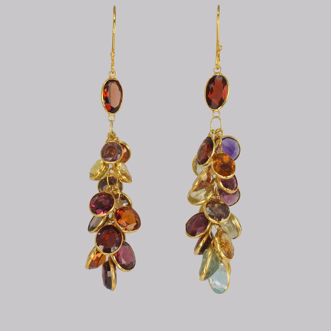 Vintage Multi Gem Chandelier Earrings 18ct Gold 1960's Tutti Fruity 2" Dangle