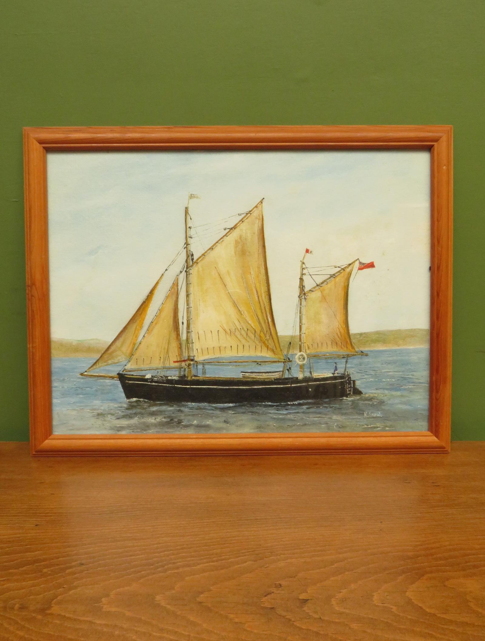 Vintage Naive Watercolour of a Sailing Ship Signed K Shaw