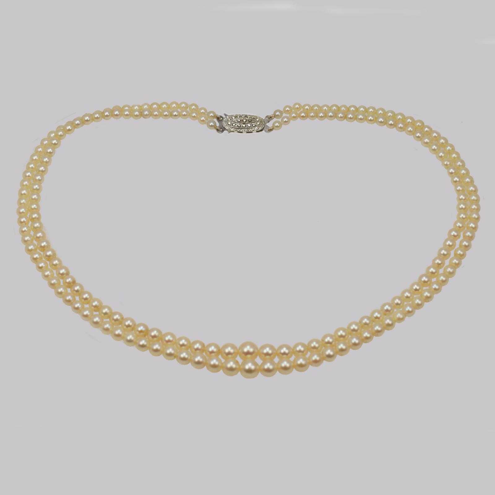Vintage Natural Pearl Necklace with Sterling Silver Art Deco Clasp Double Strand 18"