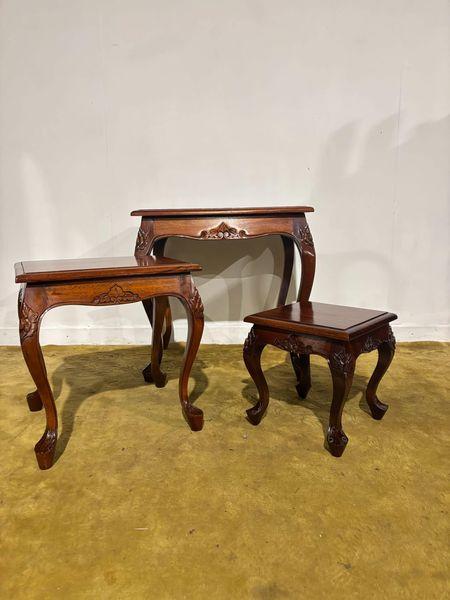 Vintage Nest of Three Carved Mahogany Tables (1 of 16)