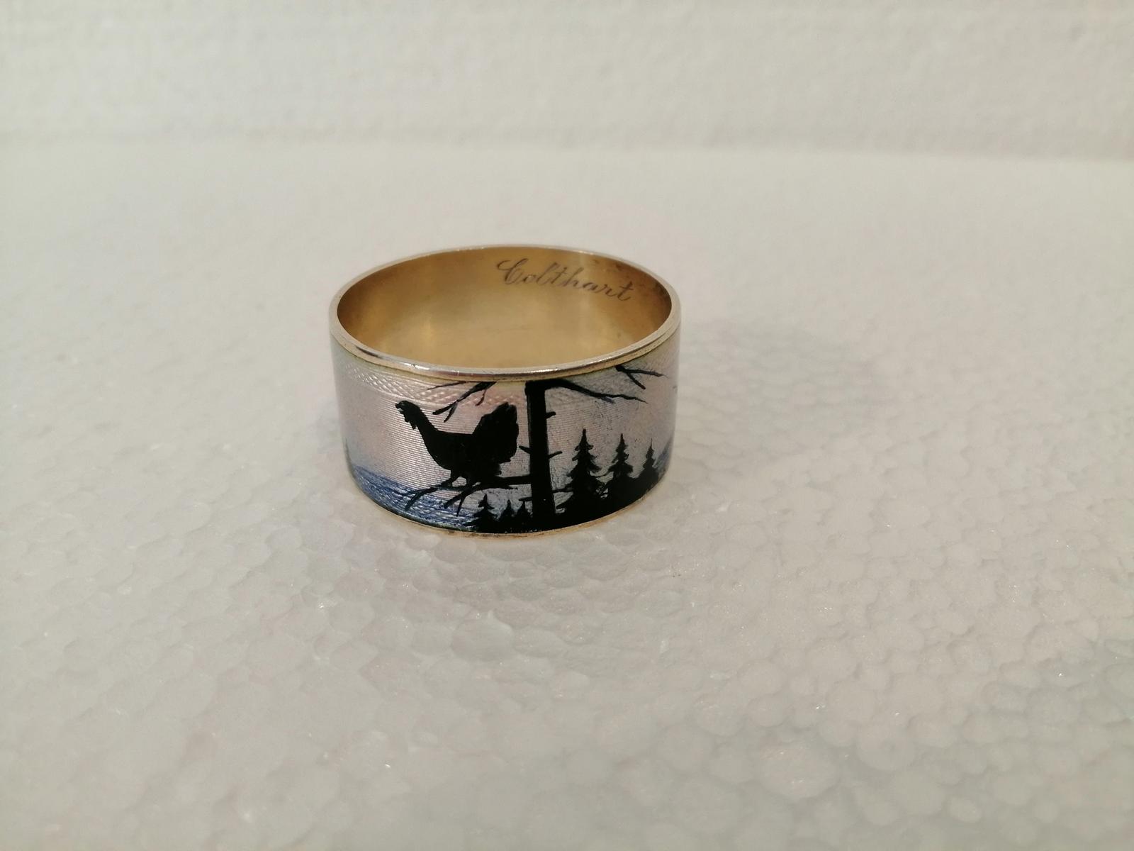 Vintage Norwegian Enamel & Silver Napkin Ring