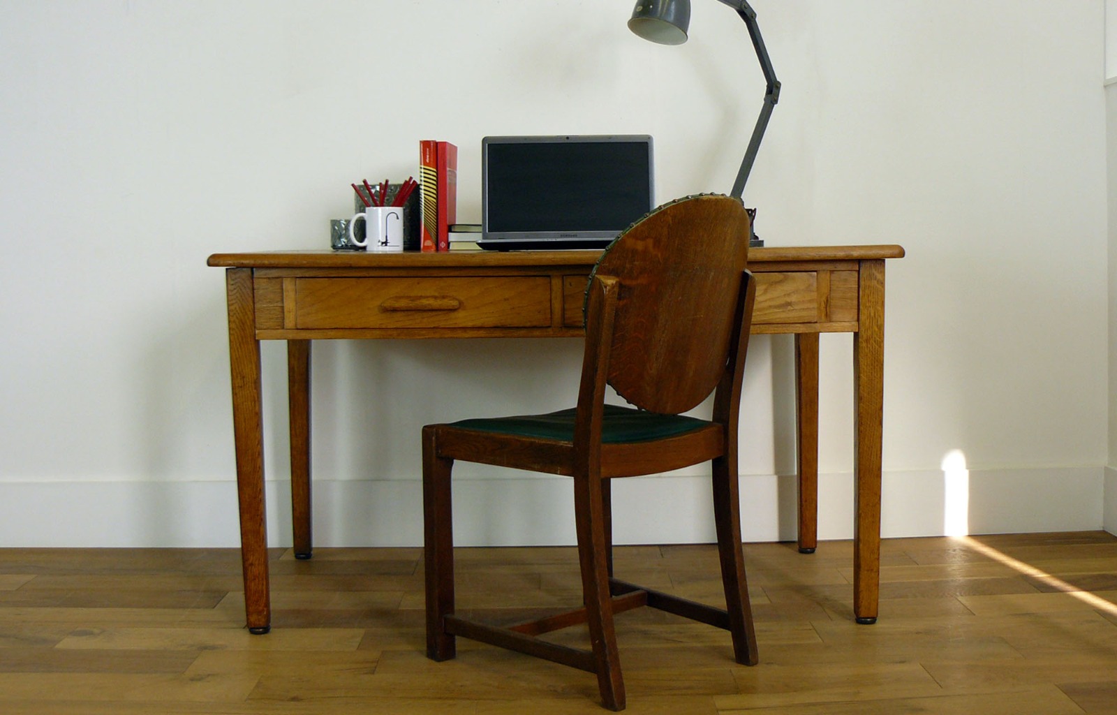 Vintage Oak Abbess Two Drawer Desk (1 of 1)