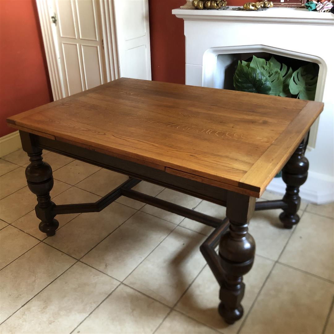 Vintage Oak Balustrade Leg Extending Draw-leaf Dining Table (1 of 10)