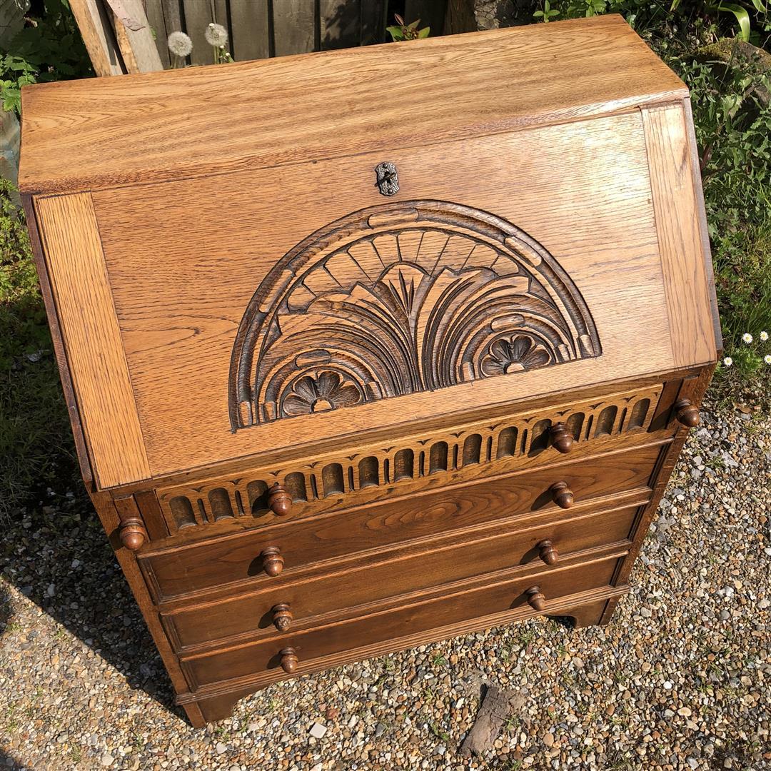 Vintage Oak Carved Bureau Chest of Drawers (1 of 12)