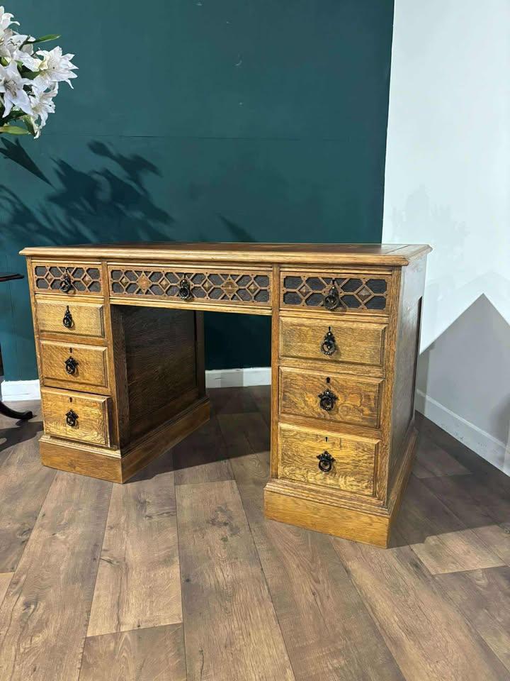 Vintage Oak Desk with Leather Inset Top (1 of 16)