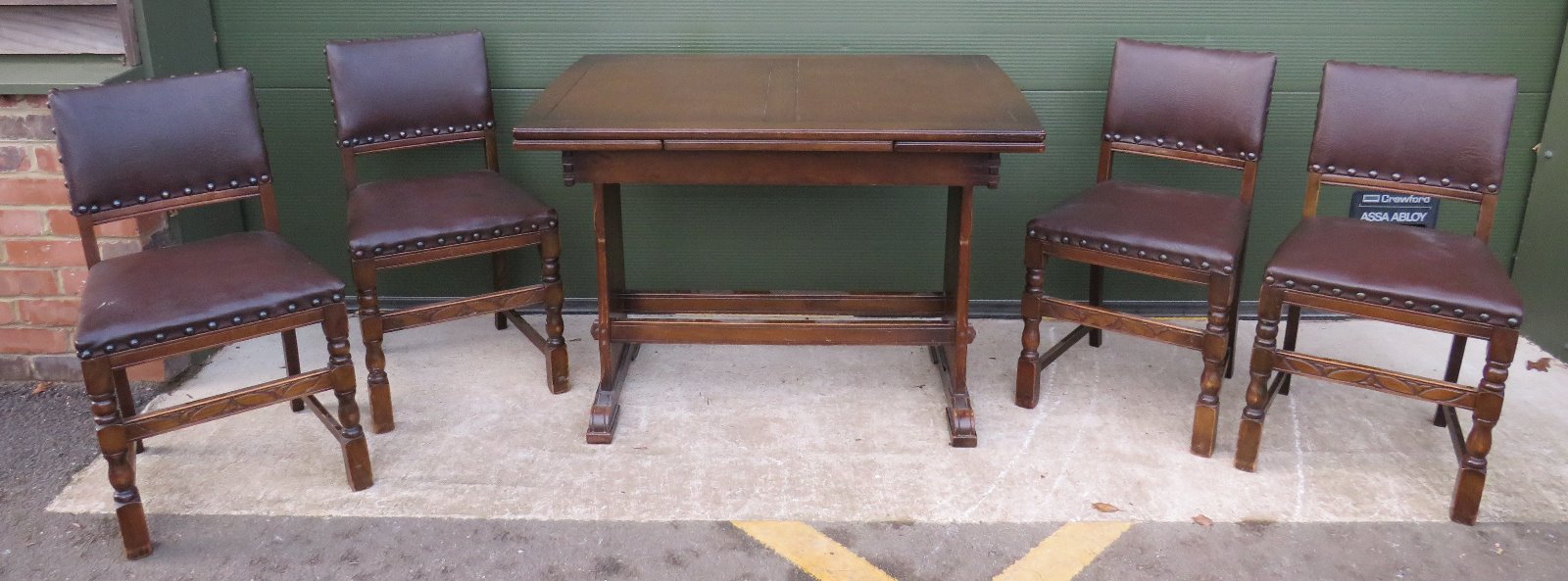Vintage Oak Draw-Leaf Table & Set of Chairs