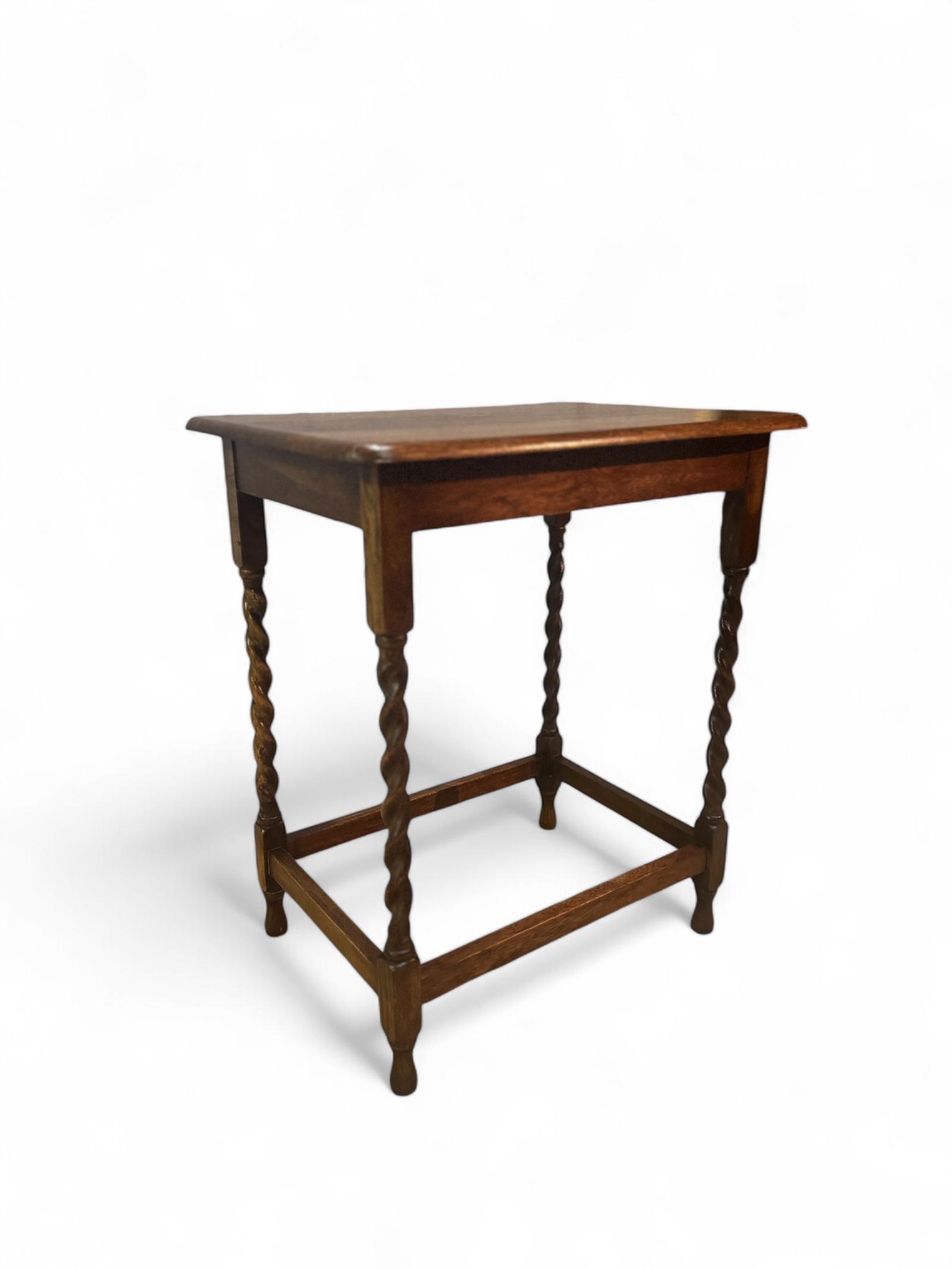 Vintage Oak Edwardian Side Table / English 1901-1910 / Barley Twist Legs