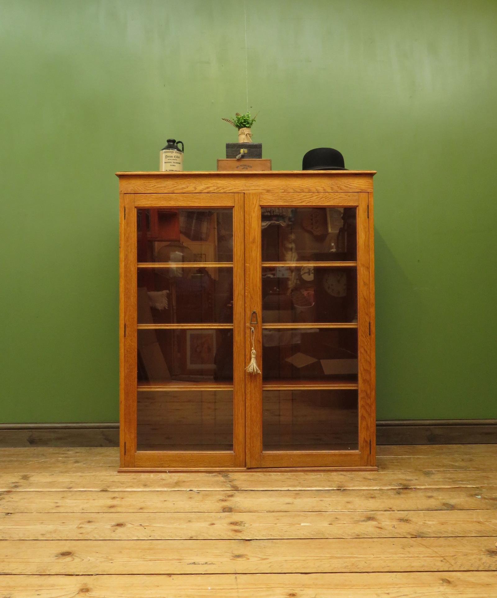 Vintage Oak Glazed Bookcase Cabinet from a Library or School