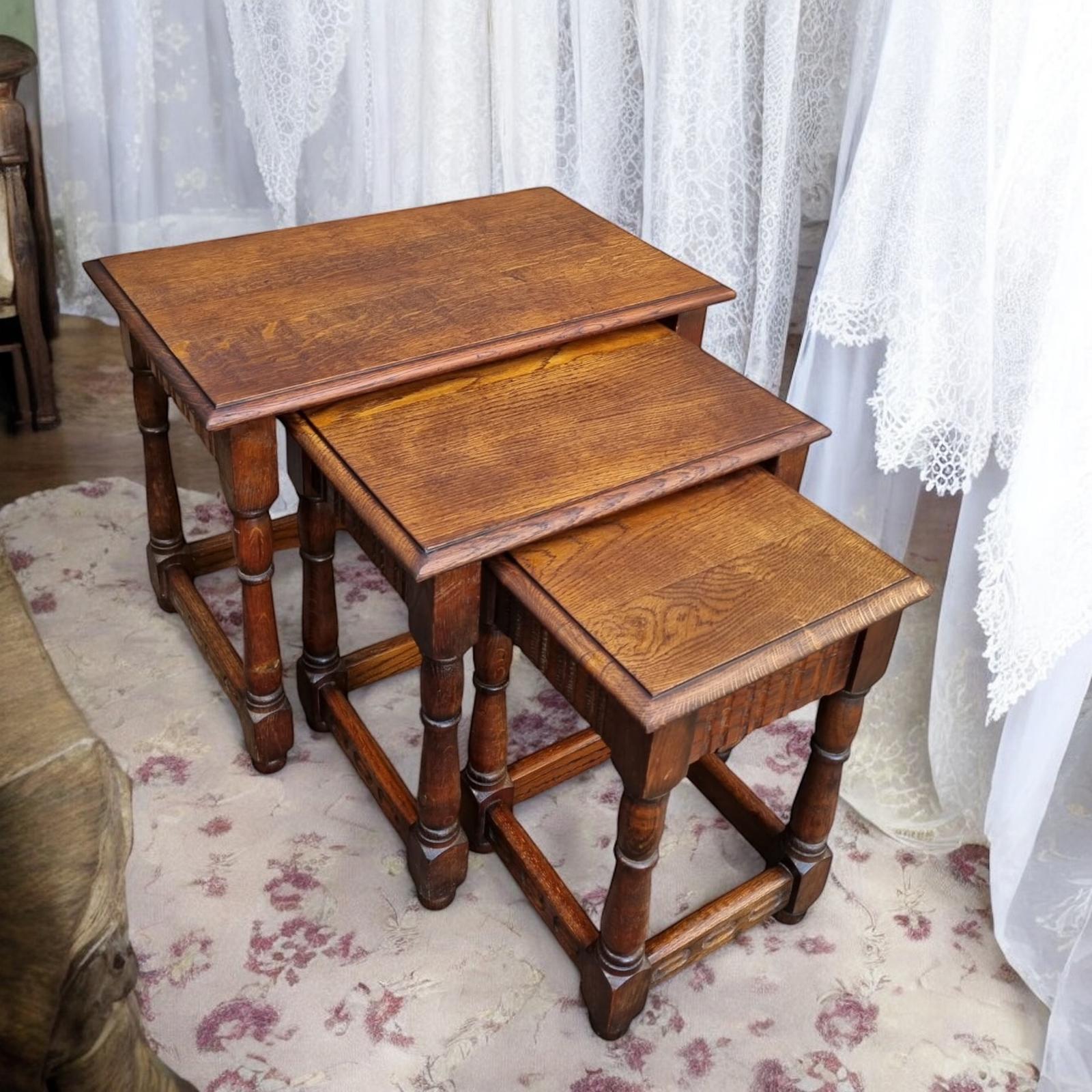 Vintage Oak Nest of Tables by Jaycee Furniture / Set of 3 / c.1970