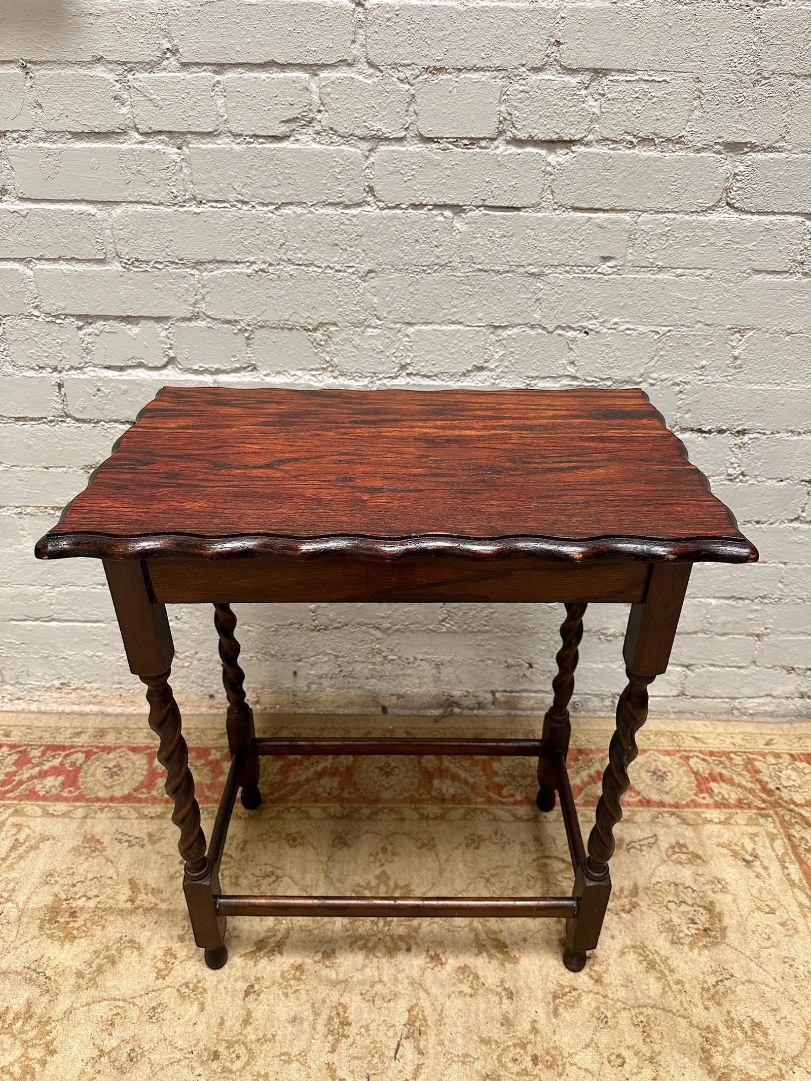 Vintage Oak Side Table / Scalloped Top / English c.1930 / Barley Twist Legs
