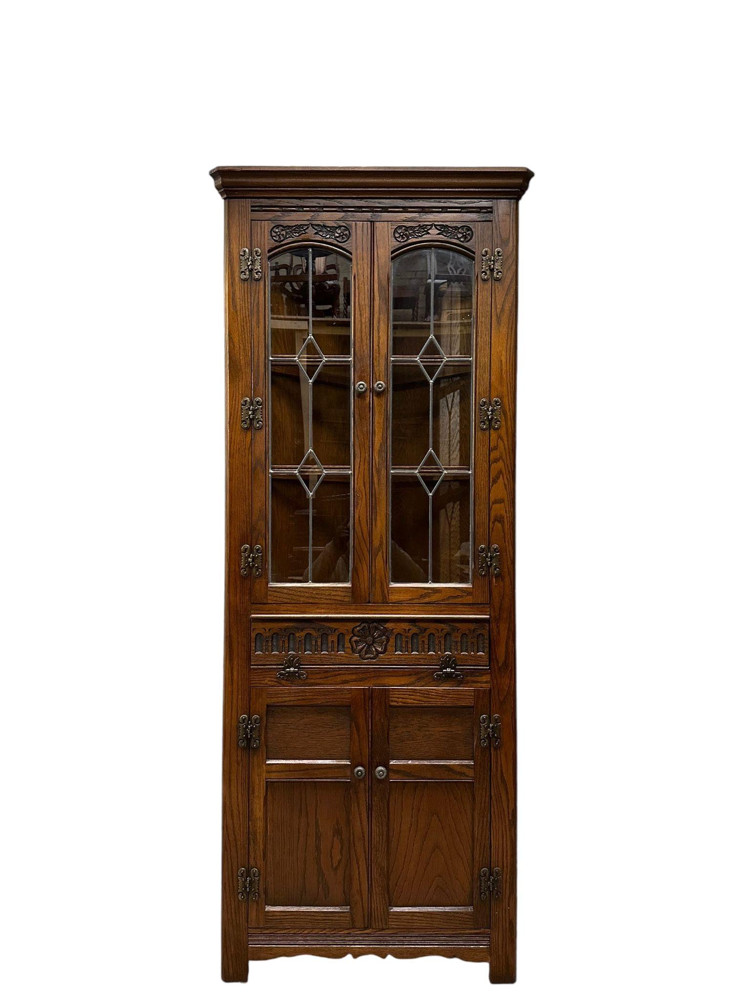 Vintage Old Charm Oak Corner Cabinet / Light Oak Finish / Made in England C1970