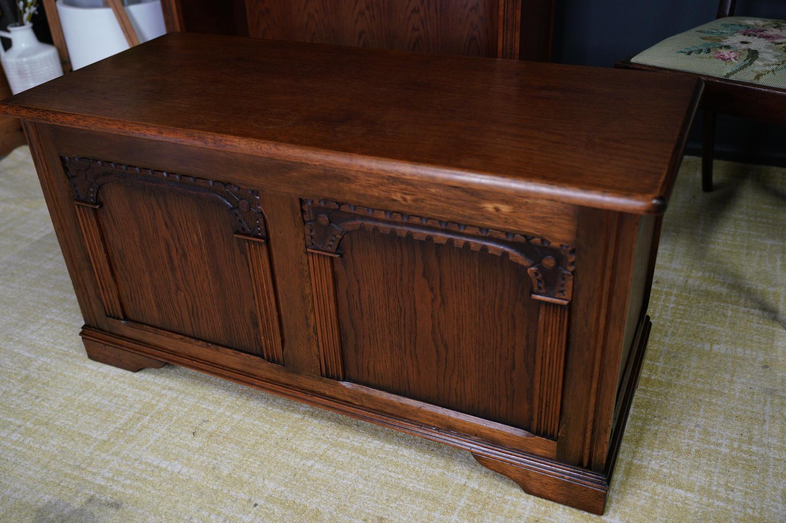 Vintage Old Charm Solid Oak Coffer Trunk Blanket Box Storage