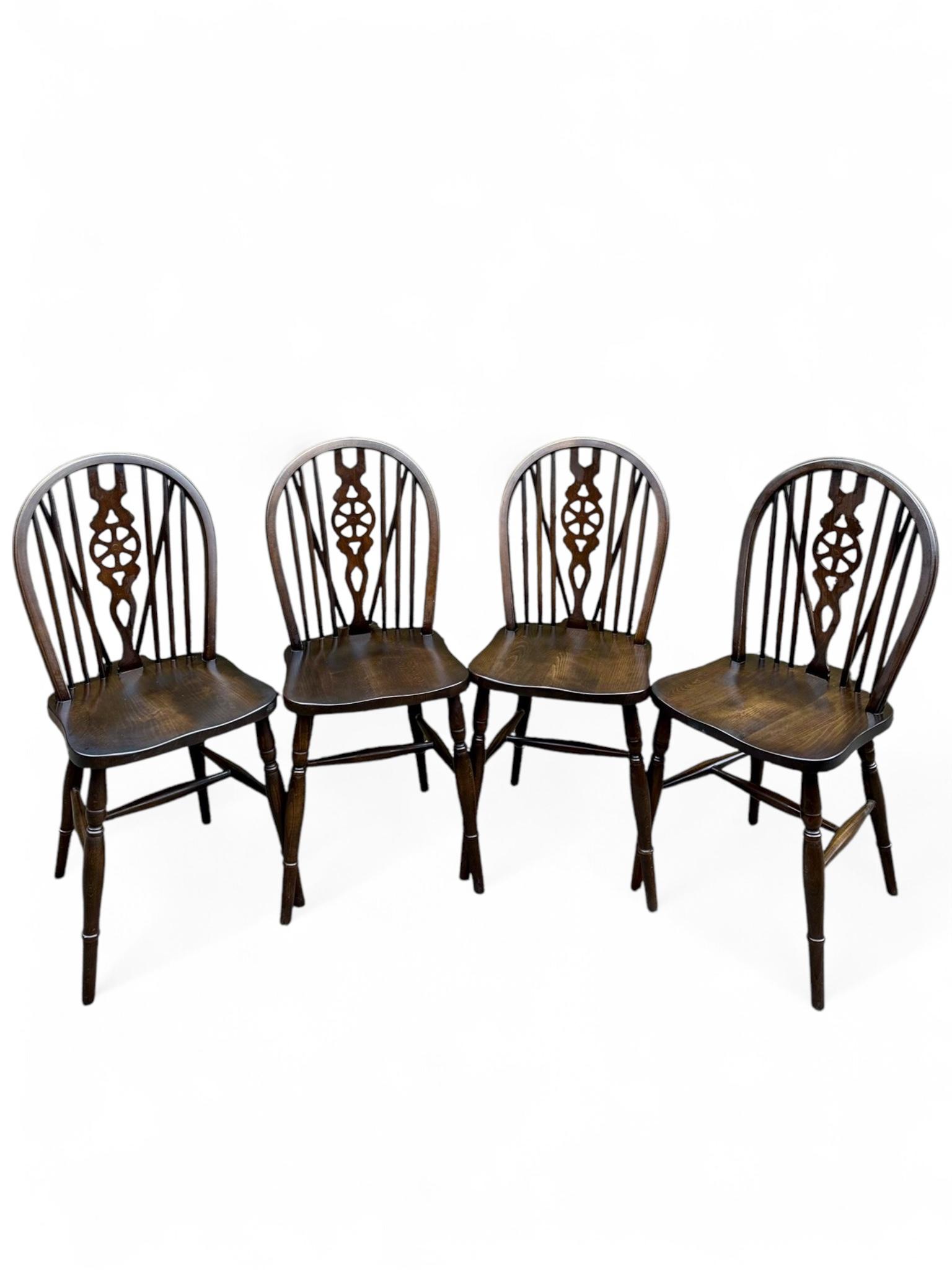 Vintage Old Charm Style Dining Wheelback Kitchen Windsor Chairs / Set Of 4 / Dark Brown Oak C1960