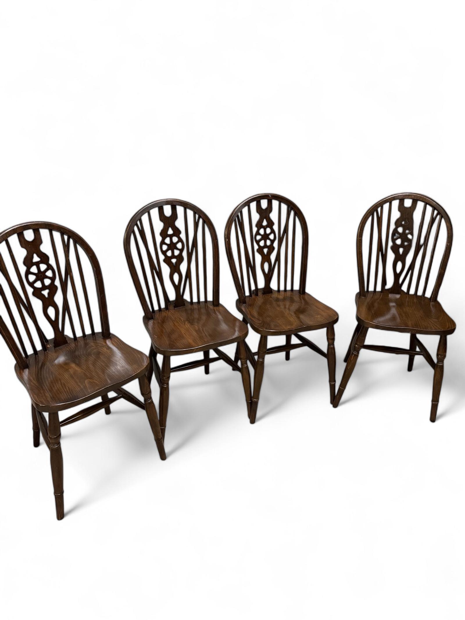 Vintage Old Charm Style Dining Wheelback Kitchen Windsor Chairs / Set Of 4 / Dark Oak C1950