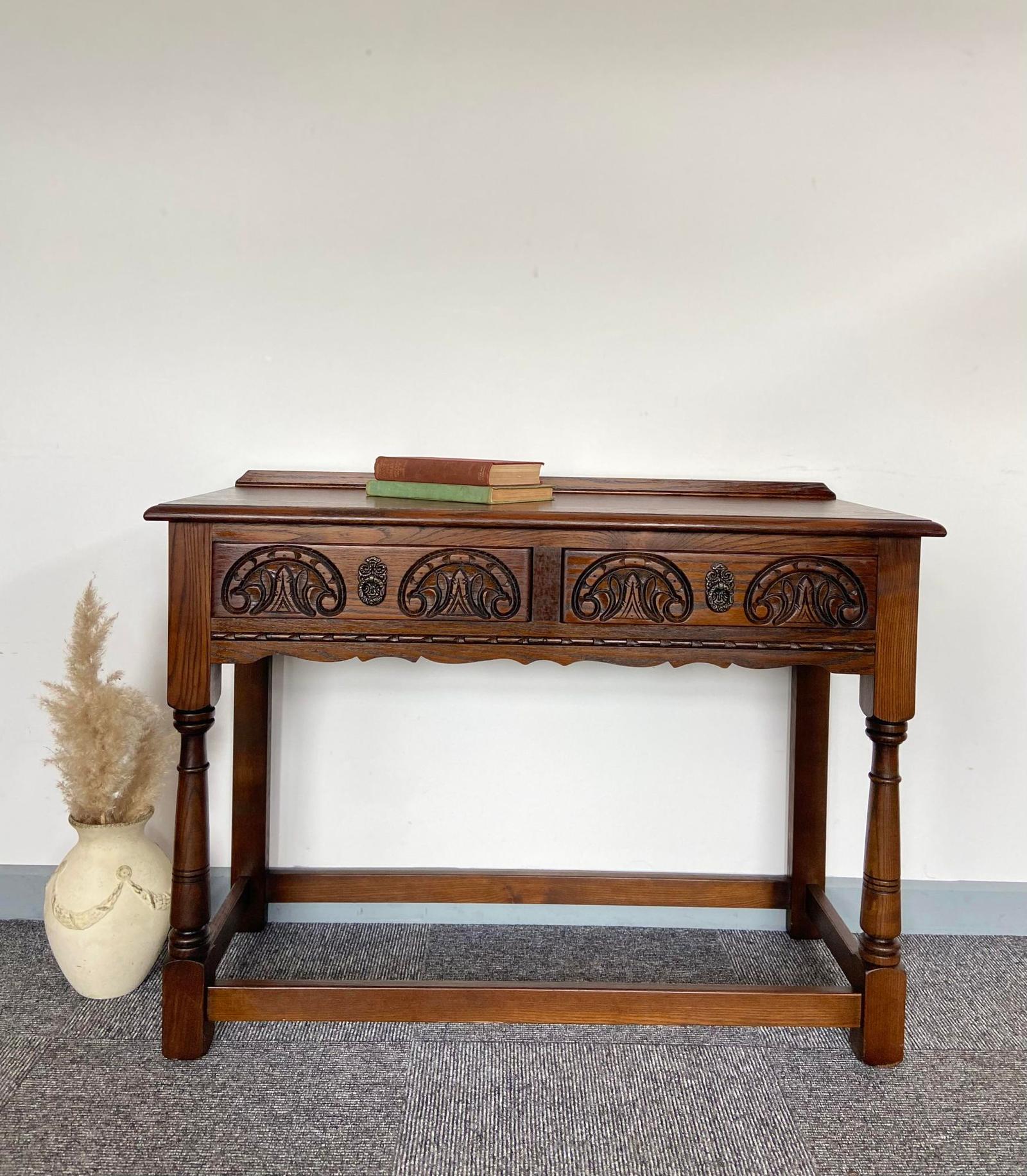 Vintage Old Charm Wood Bros Console / Serving Table / Traditional Chestnut Finish / Two Drawers - Made in England 1970s