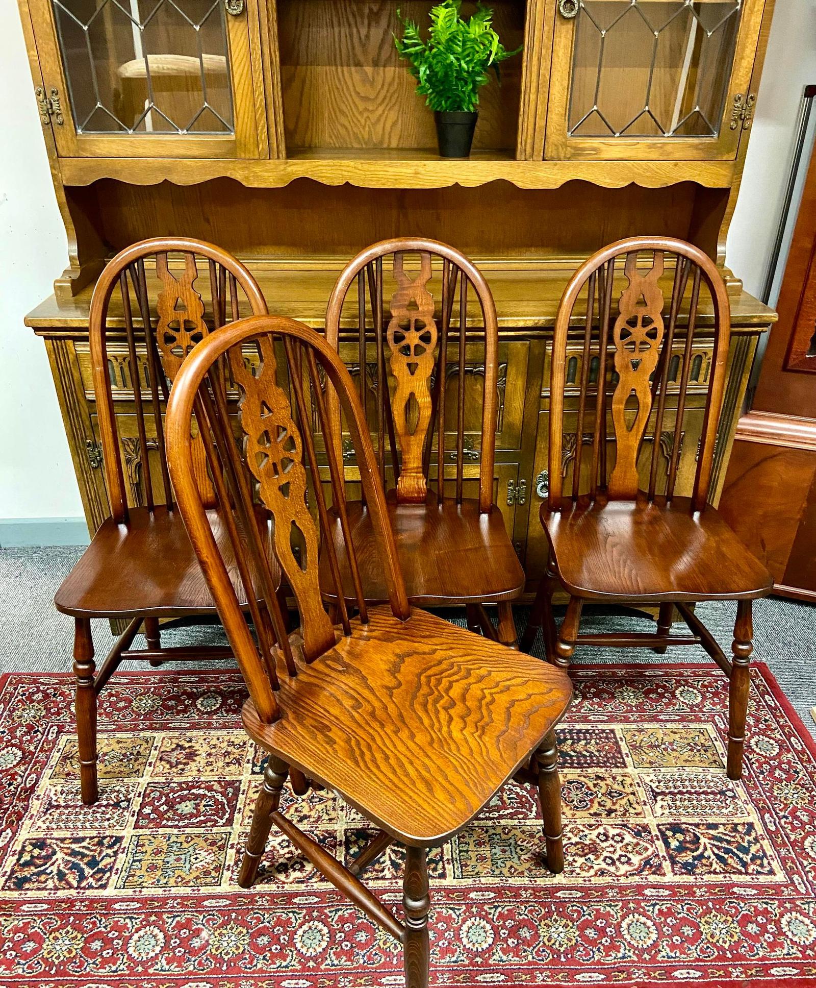 Vintage Old Charm Wood Bros Dining Wheelback Kitchen Windsor Chairs / Set of 4 / Light Oak