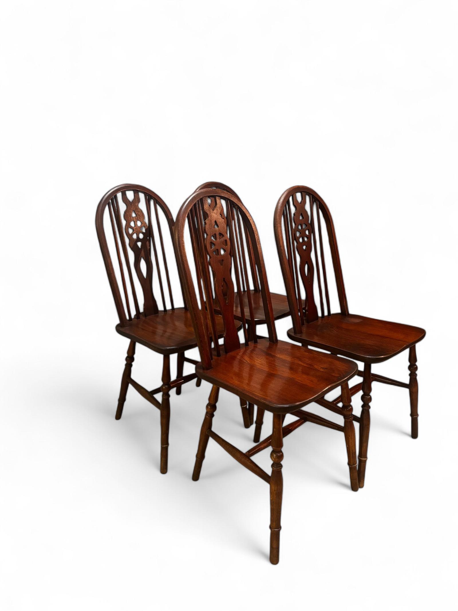 Vintage Old Charm Wood Bros Dining Wheelback Kitchen Windsor Chairs / Tudor Brown / Set of 4