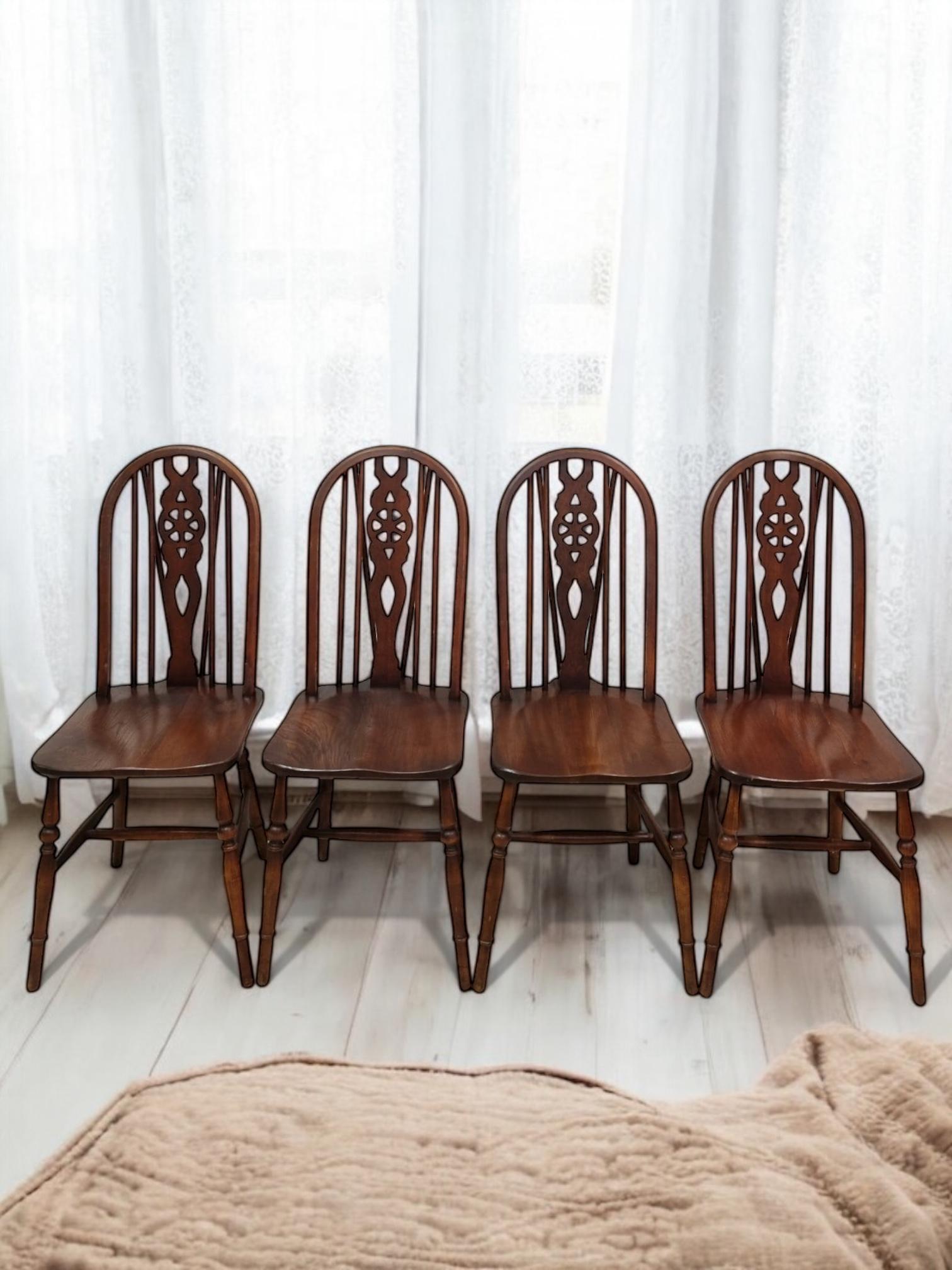 Vintage Old Charm Wood Bros Dining Wheelback Kitchen Windsor Chairs / Tudor Brown / Set of 4