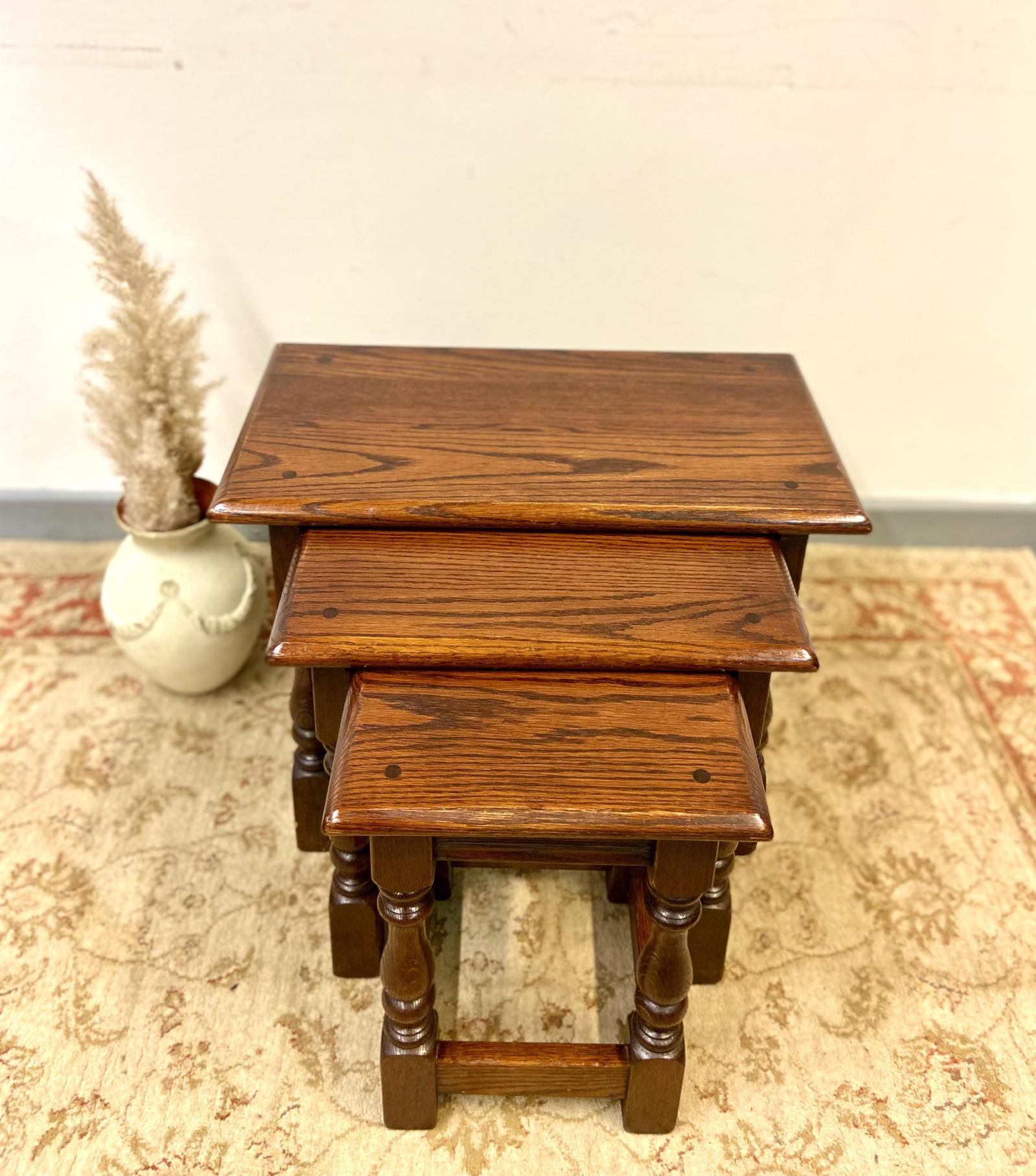 Vintage Old Charm Wood Bros / Genuine Furniture Solid Oak Wooden Nest of 3 Tables / Made in England 1960s