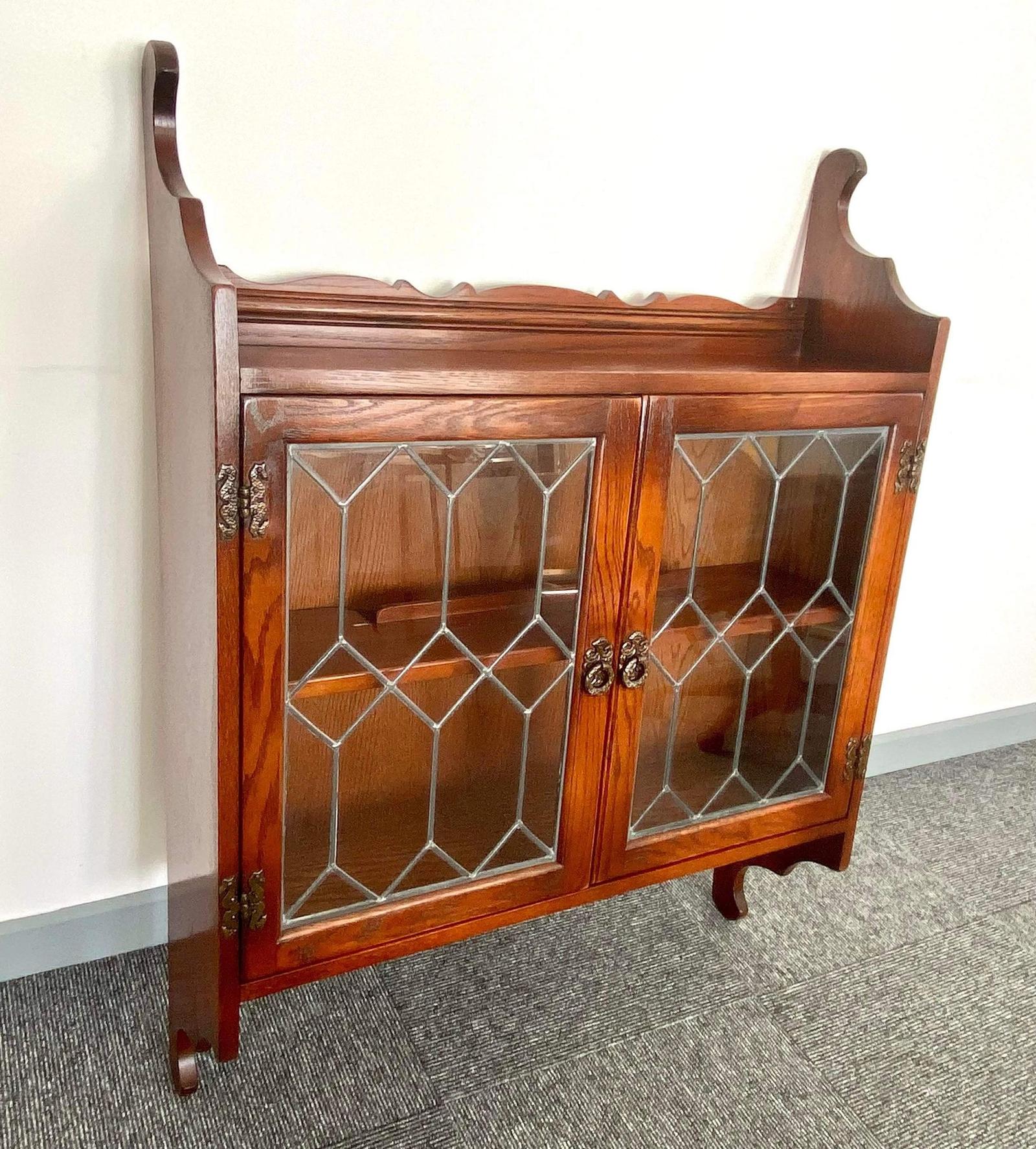 Vintage Old Charm Wood Bros / Hanging Display Cabinet / Tudor Brown - Made in England 1970s
