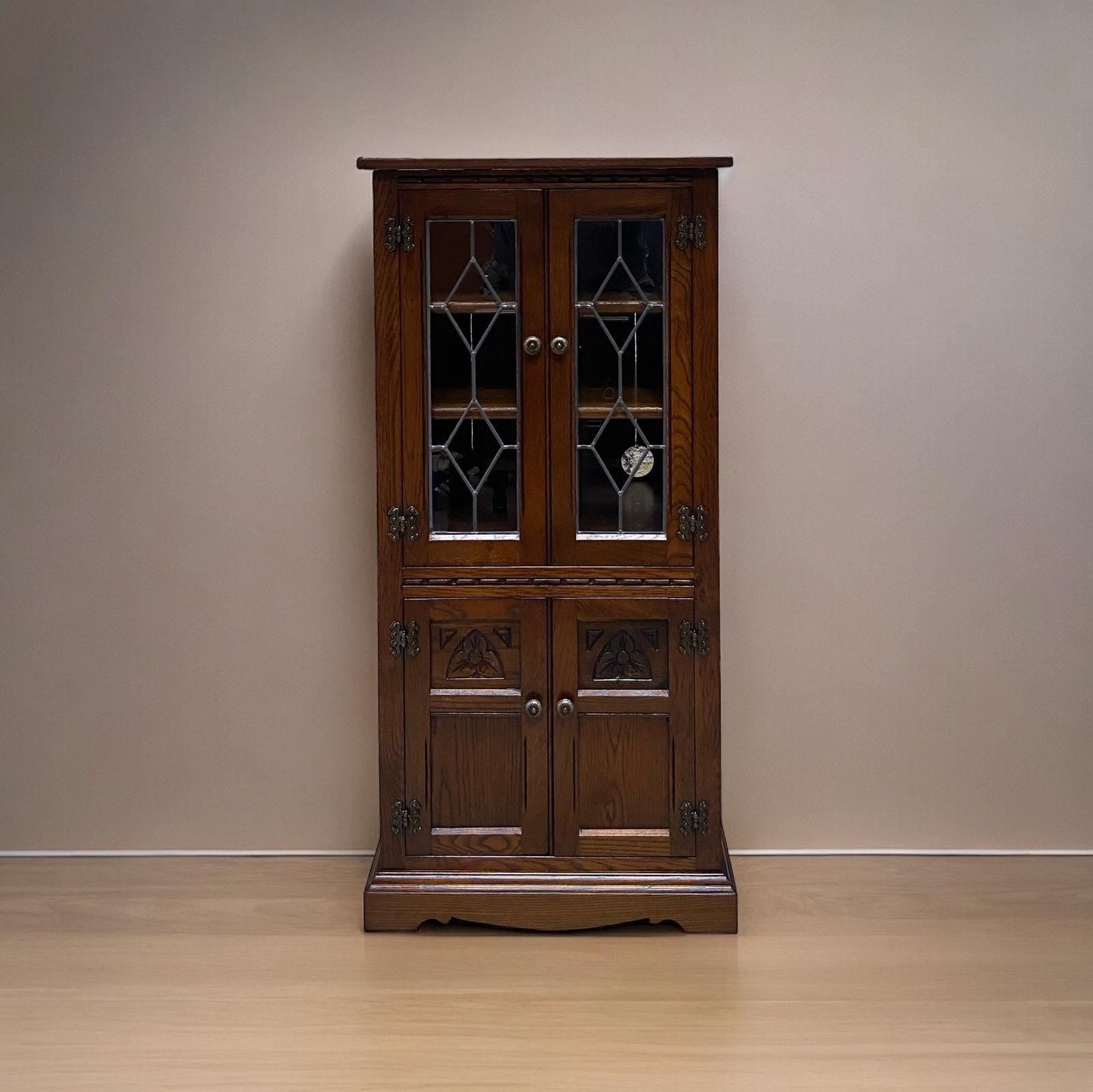 Vintage Old Charm Wood Bros / Hi Fi Cabinet / Bookcase / Drink Cabinet / Tudor Brown / Made in England 1970s