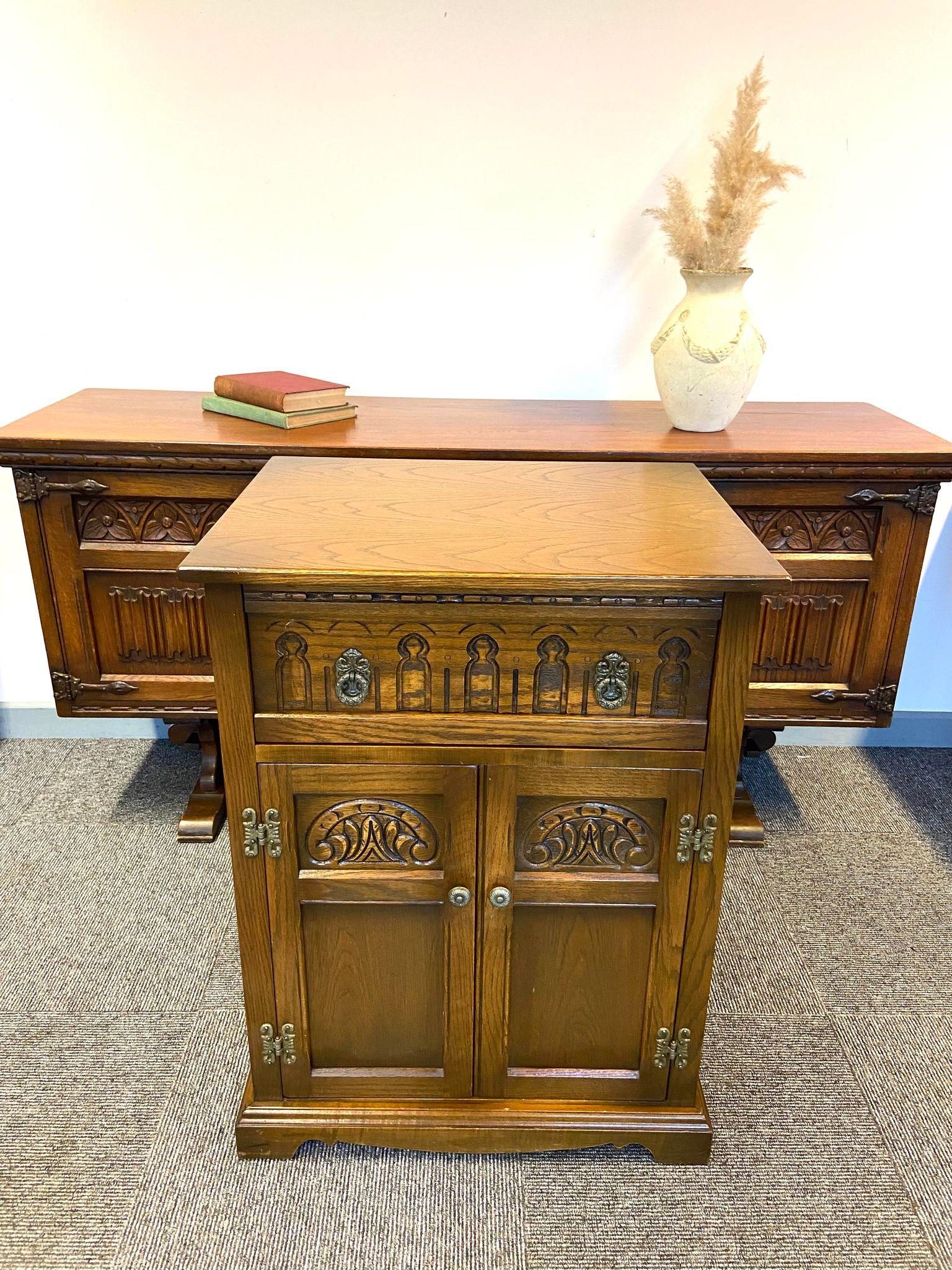 Vintage Old Charm Wood Bros / Music Cabinet / Oak Cupboard / Drink Cabinet / Made in England c.1970