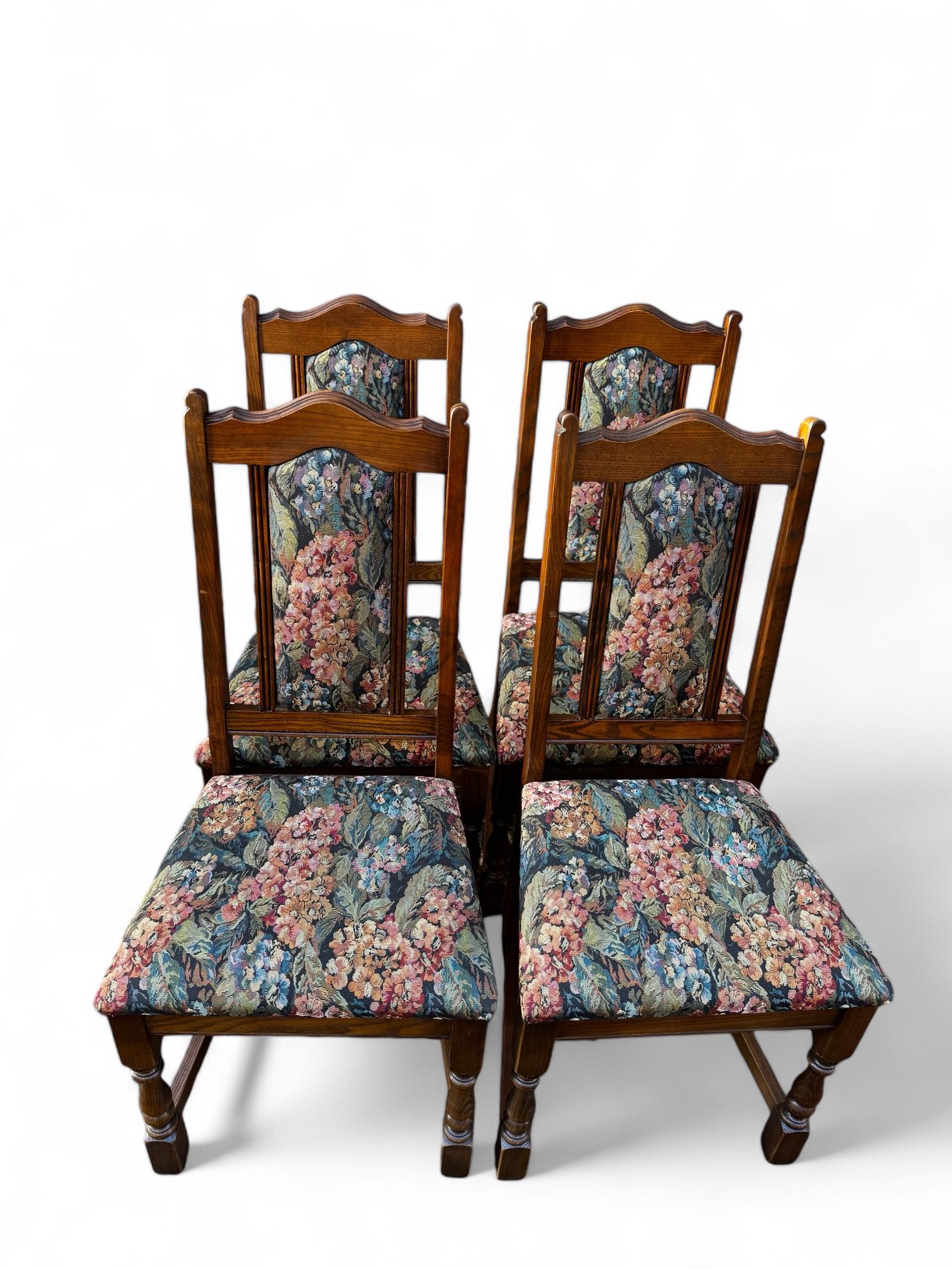 Vintage Old Charm Wood Bros Oak Dining Chairs / Set of 6 / Solid Oak Wooden Frames c.1970