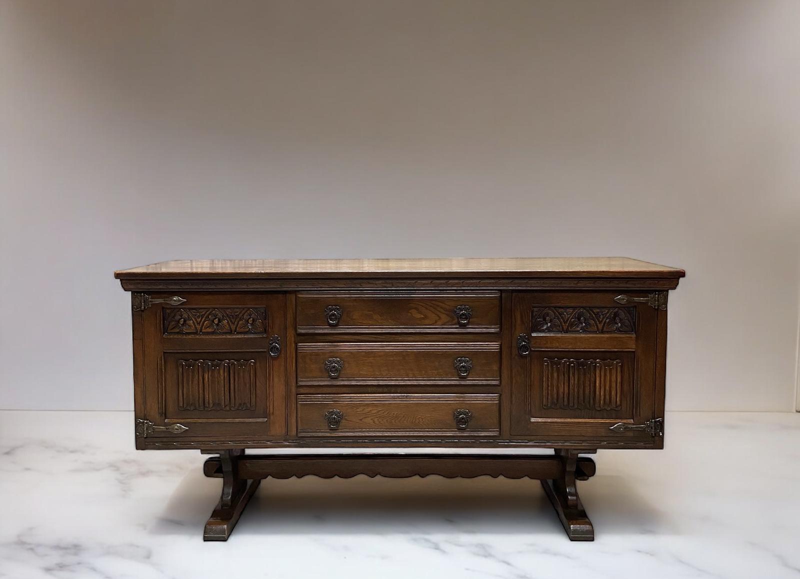 Vintage Old Charm Wood Bros / Raised Sideboard / Dark Oak Finish / Made in England / 1960s