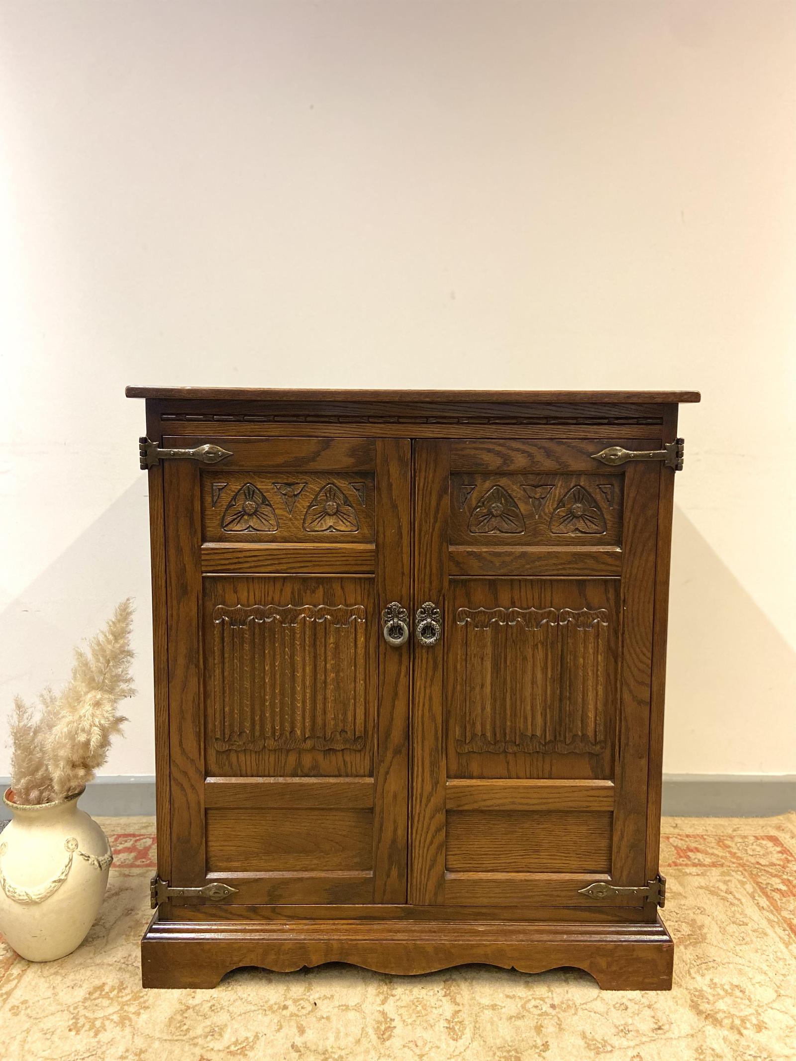 Vintage Old Charm Wood Bros / Solid Oak TV Cabinet / Traditional Chestnut - Made in England c.1970