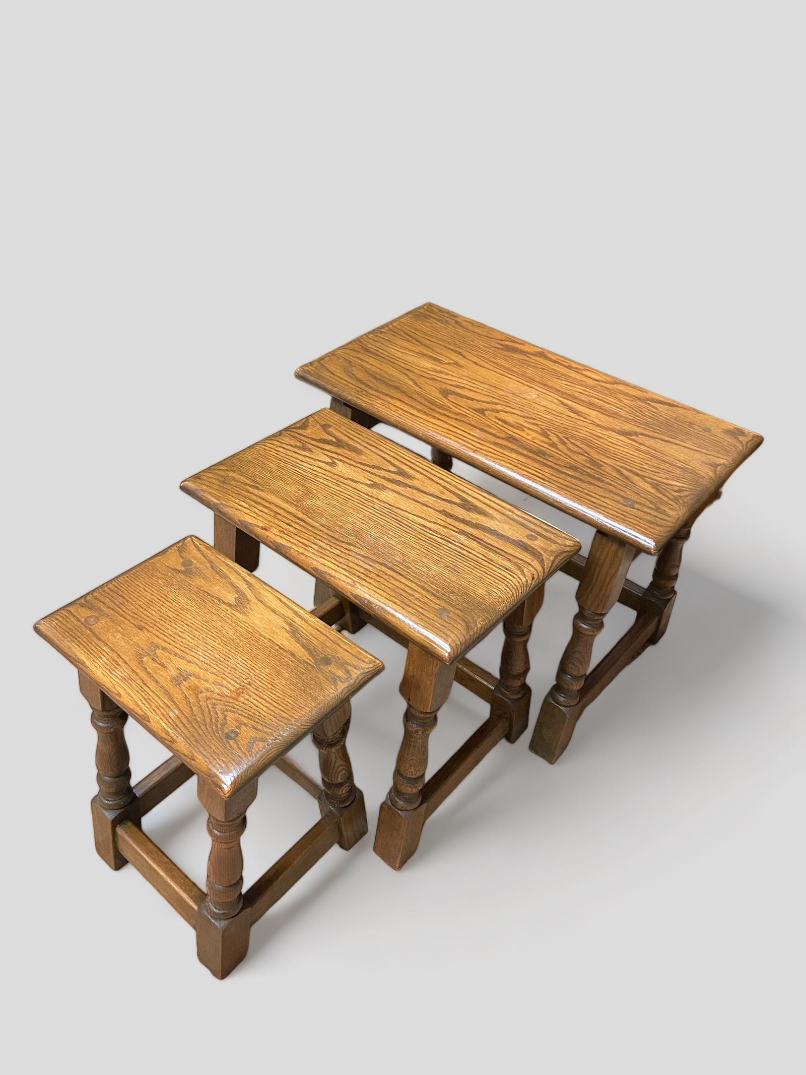 Vintage Old Charm Wood Bros / Solid Oak Wooden / Light Oak / Nest of 3 Tables / Made in England 1960s