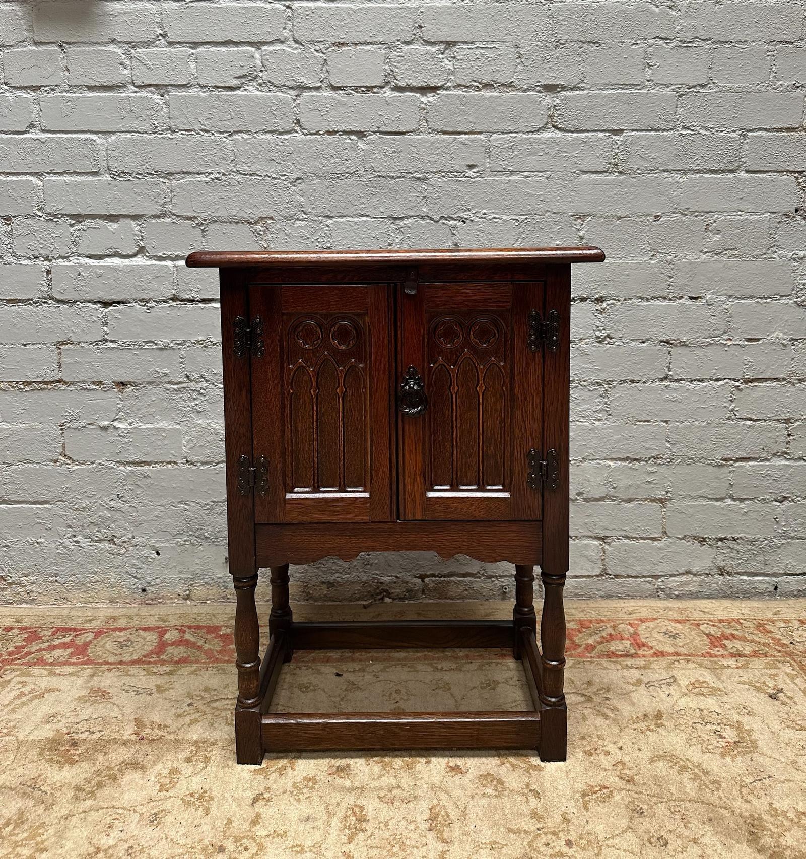 Vintage Old Charm Wood Bros Style / Small Bedside Cabinet / Brown Oak / Made in England 1970s
