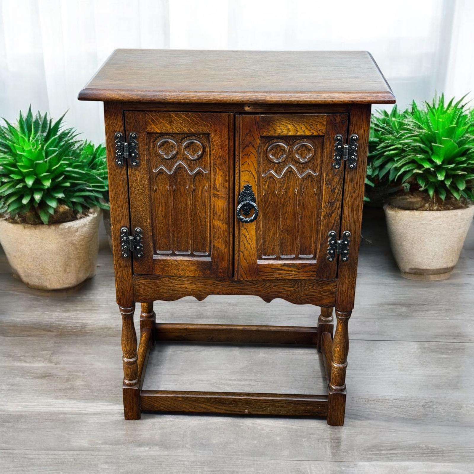 Vintage Old Charm Wood Bros Style / Small Bedside Cabinet / Light Oak / Made in England 1970s