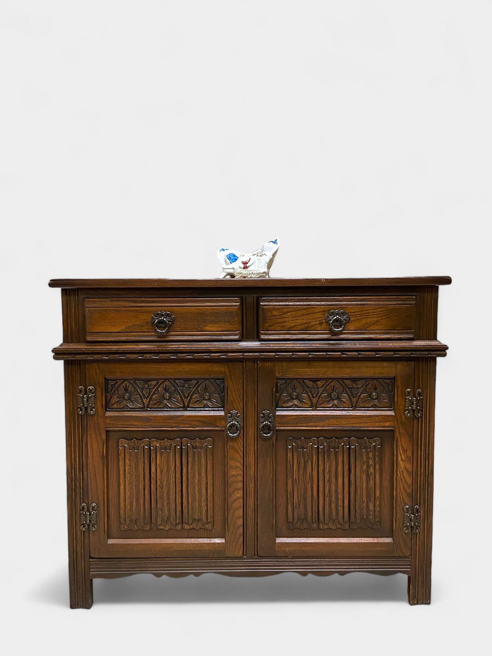 Vintage Old Charm Wood Brothers / Aldeburgh Two Door Sideboard / Traditional Chestnut Colour c.1970