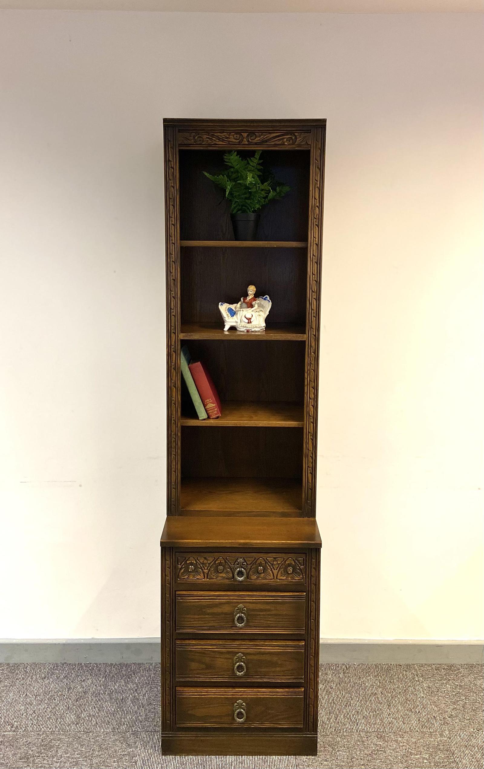 Vintage Old Charm Wood Brothers / Bookcase Cupboards Drawers / Tudor Brown - Made in England 1970s