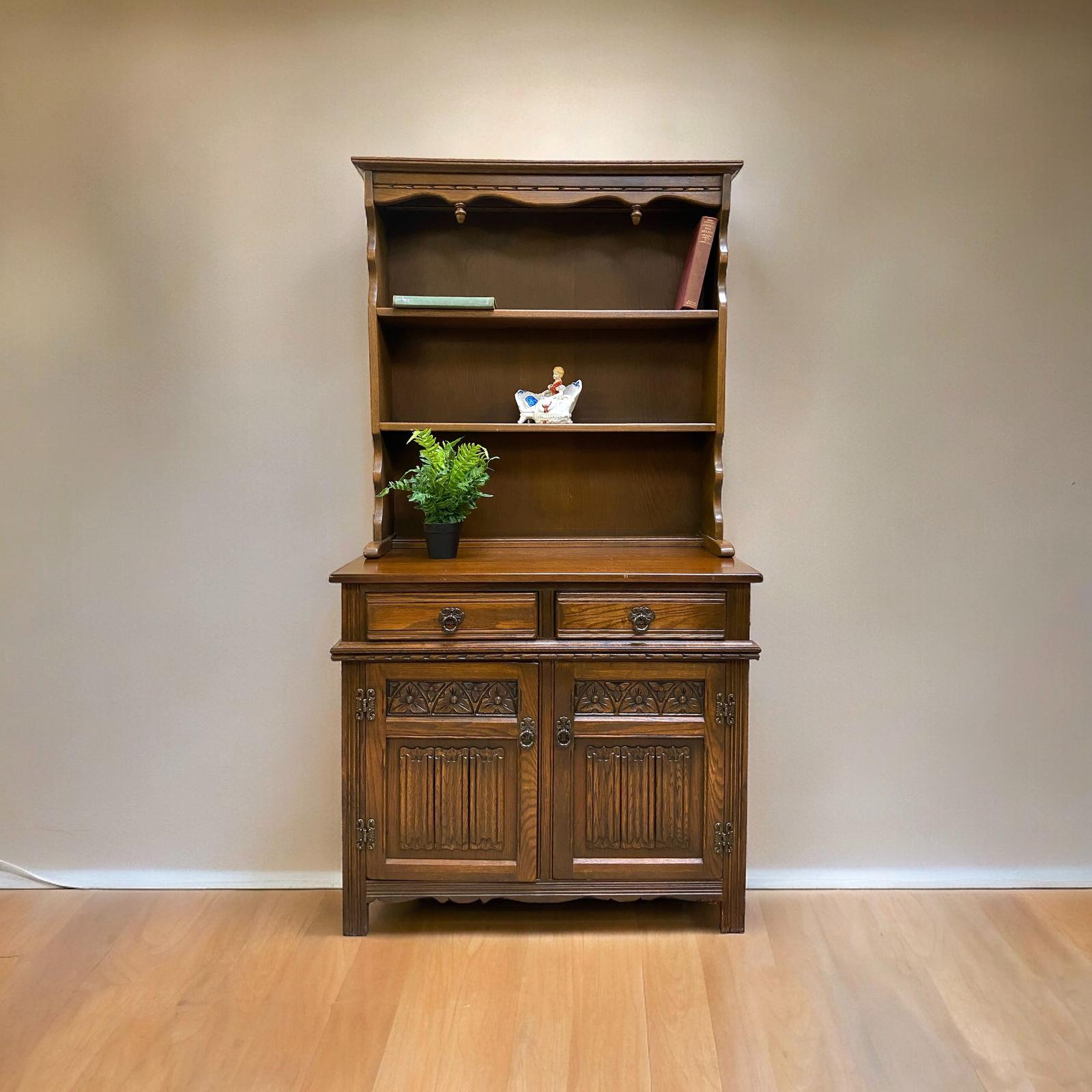 Vintage Old Charm Wood Brothers / Carved Oak Dresser / Traditional Chestnut Colour c.1970