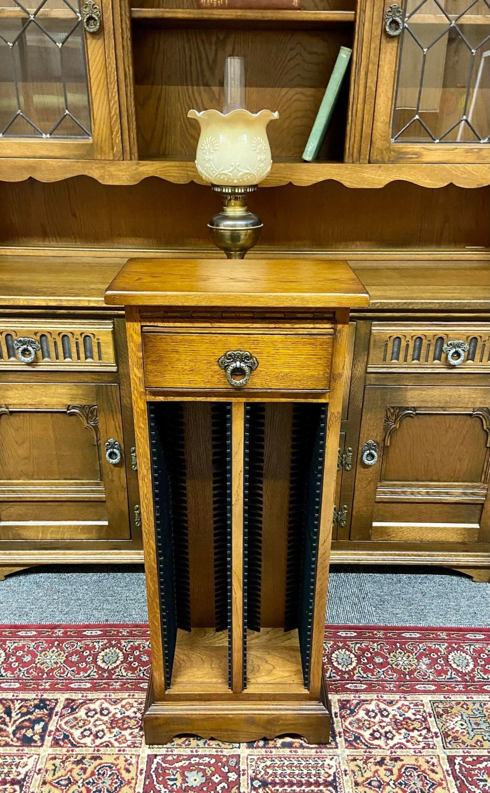 Vintage Old Charm Wood Brothers CD Rack With Drawer / Light Oak / Made in England