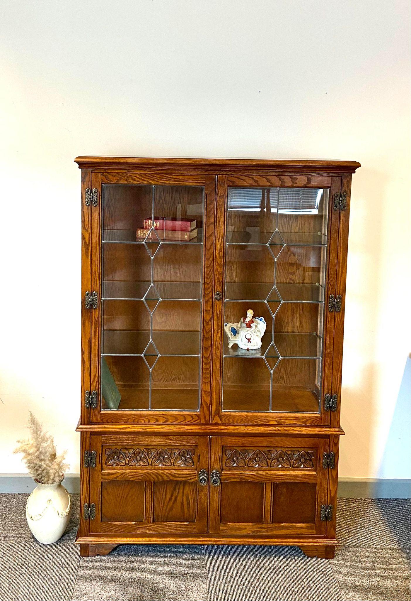 Vintage Old Charm Wood Brothers / Glazed Bookcase Cabinet / Heritage Light Oak - Made in England 1960s