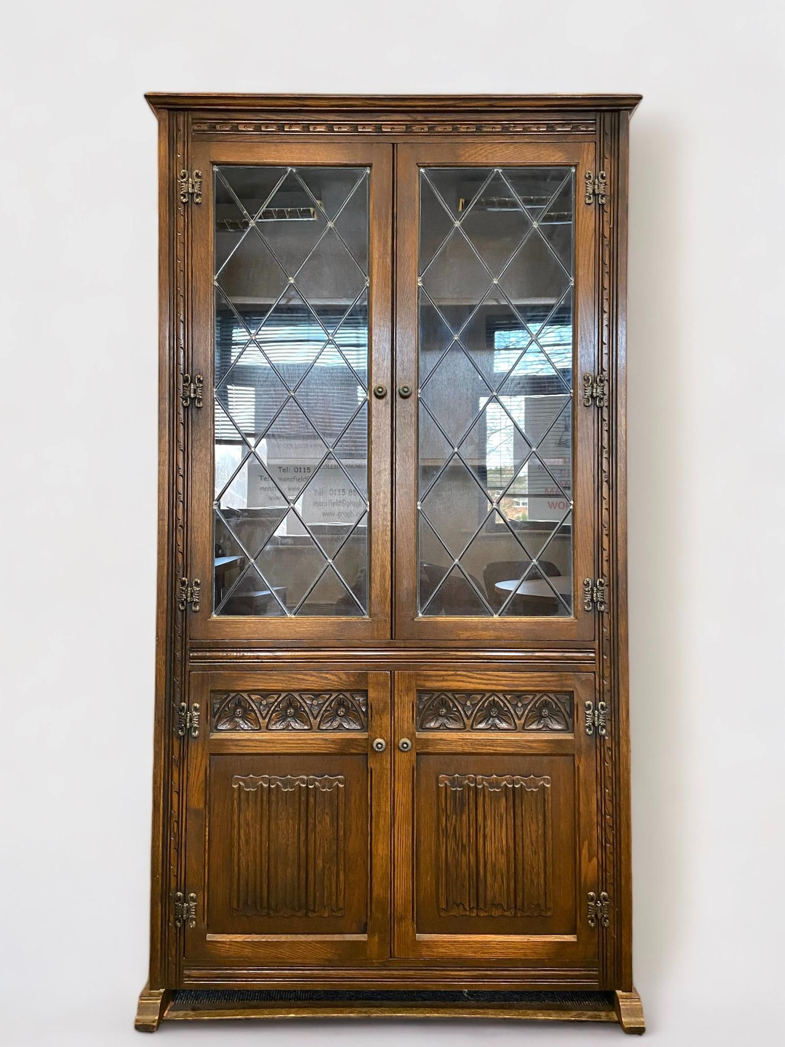 Vintage Old Charm Wood Brothers / Glazed Bookcase Cabinet / Light Oak / Made in England / 1960s