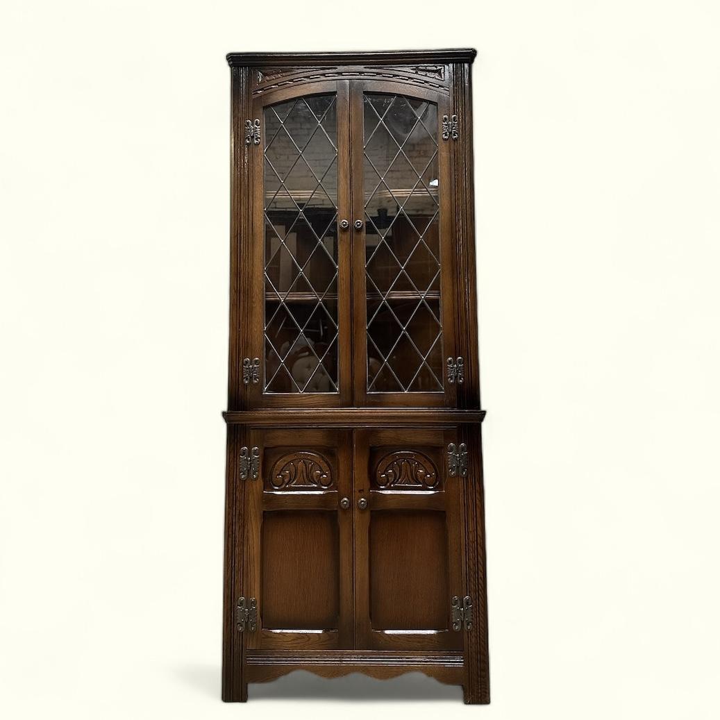 Vintage Old Charm Wood Brothers / Oak Corner Cabinet c.1970 / Light Oak Traditional Colour