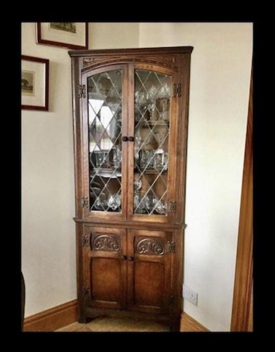 Vintage Old Charm Wood Brothers / Oak Corner Cabinet / Light Oak Traditional Colour / Made in England 1970s