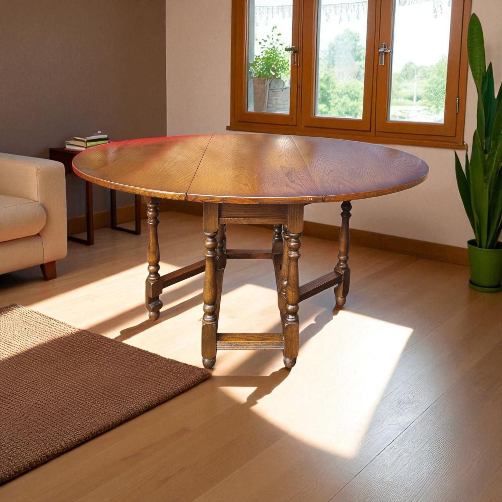 Vintage Old Charm Wood Brothers Oak Gateleg Drop Leaf Dining Table / Tudor Brown c.1970