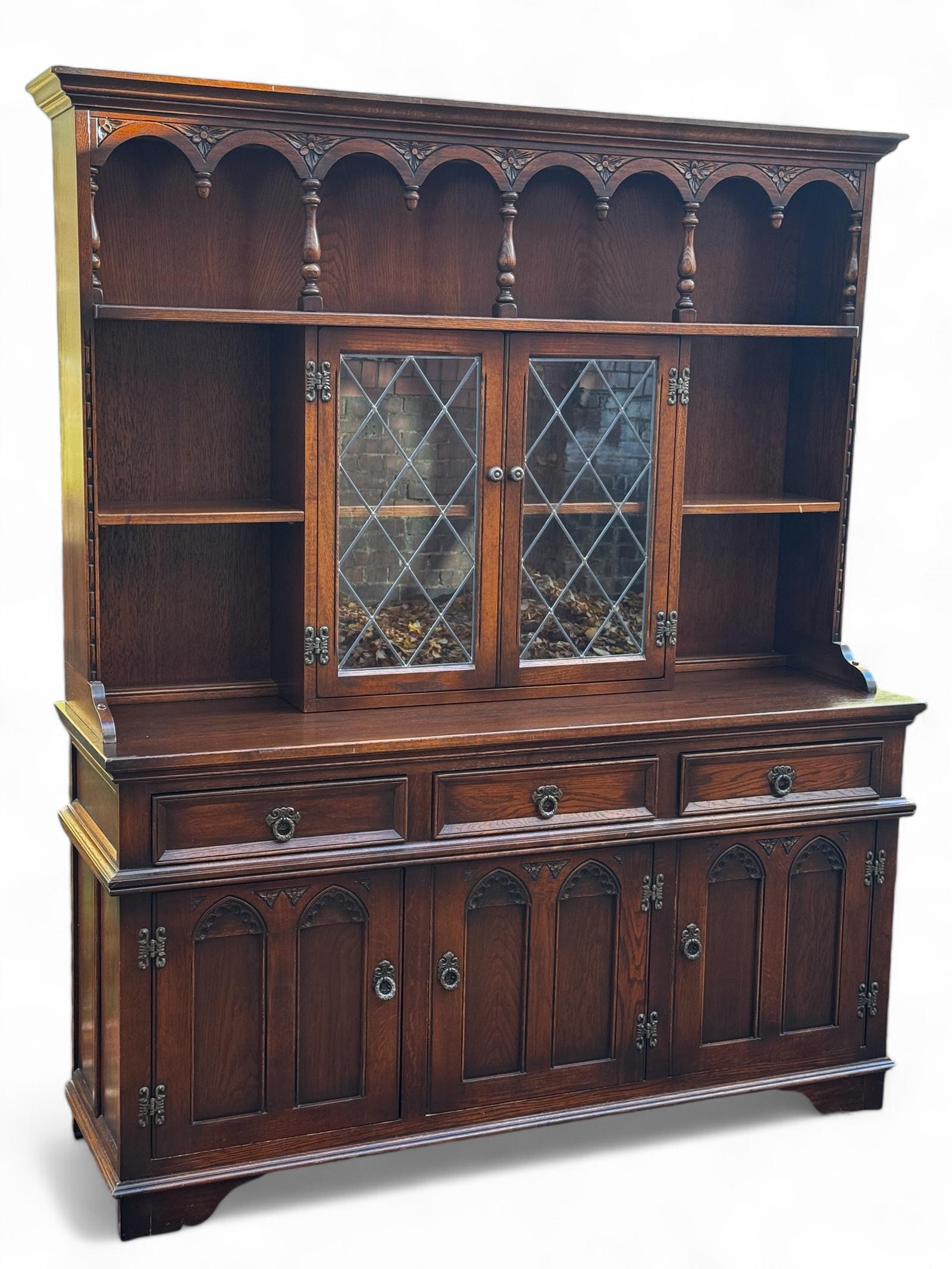 Vintage Old Charm Wood Brothers Oak Welsh Dresser / Tudor Brown c.1970