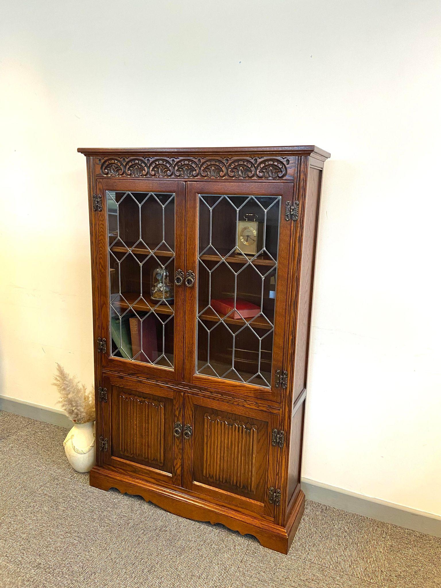 Vintage Old Charm Wood Brothers / Original Bookcase & Lower Cupboard / Light Oak - England 1970s